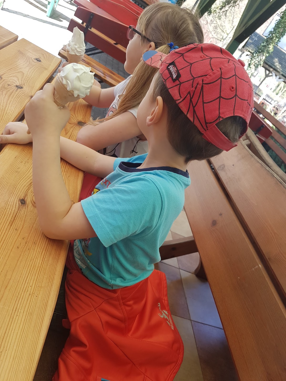 A to kolejny „problem” wielu rodziców, dziadków i ciotek.. zimne zimą. Już nie raz słyszałam „Ale jak to lody w styczniu?” A notorycznie w restauracjach, gdy zamawiam wodę czy sok dla dzieci dają mi te z półki i muszę się domagać tych z lodówki. Tak moje dzieci jedzą lody niezależnie od pogody i piją wodę prosto z lodówki. Wierzcie czy nie jeszcze nigdy nie miały żadnej infekcji gardła.. I zupełnie nie wiem jaka jest logika w ty, że latem zimne niby można, a zimą (jesienią i wiosną) nie.. W końcu przy -5oC wdychamy powietrze zimne.. i konia z rzędem temu dziecku, które robi to „zawsze” nosem.. Wszystkie latają z otwartymi buziami! To dlaczego nie jeść lodów? A woda z lodówki ma „tylko” +4-5oC.. to wobec zimowego powietrza jest wręcz ciepła!