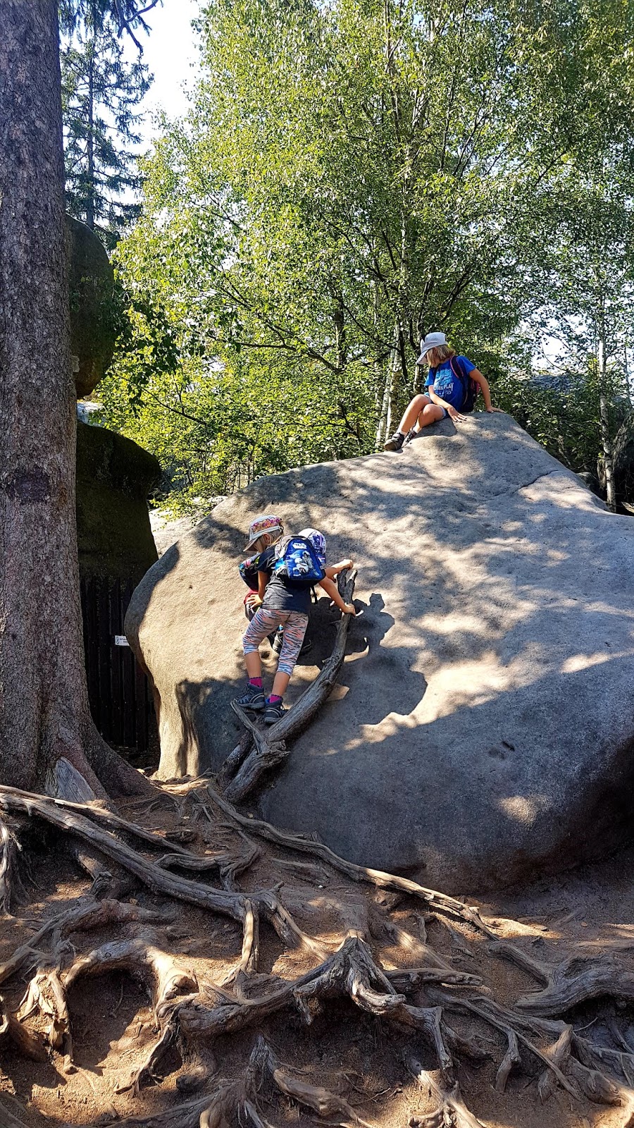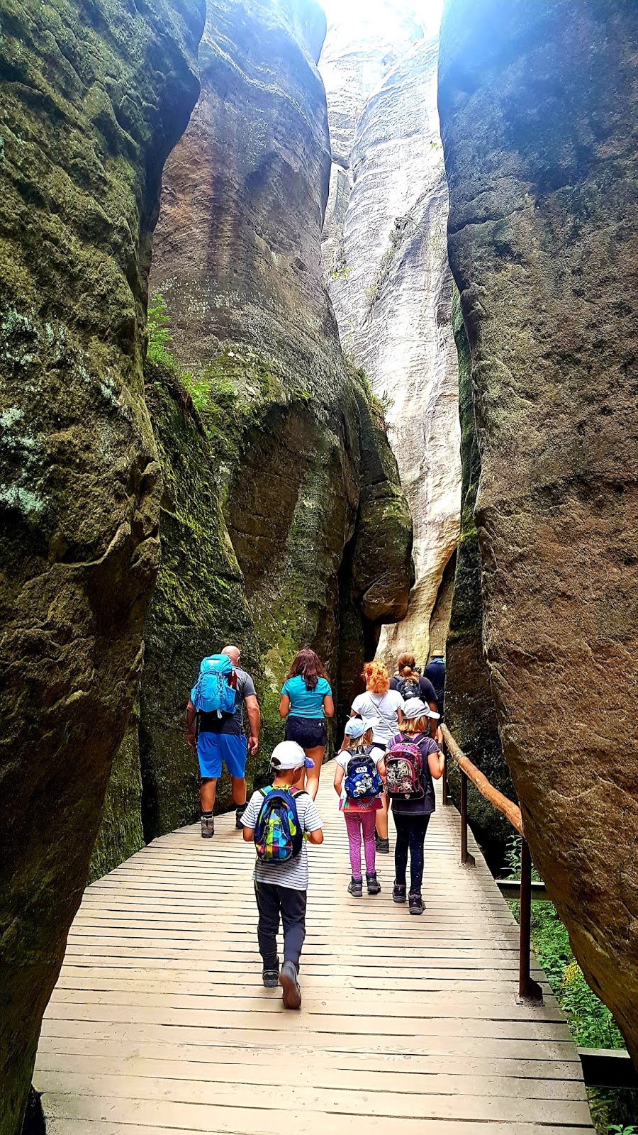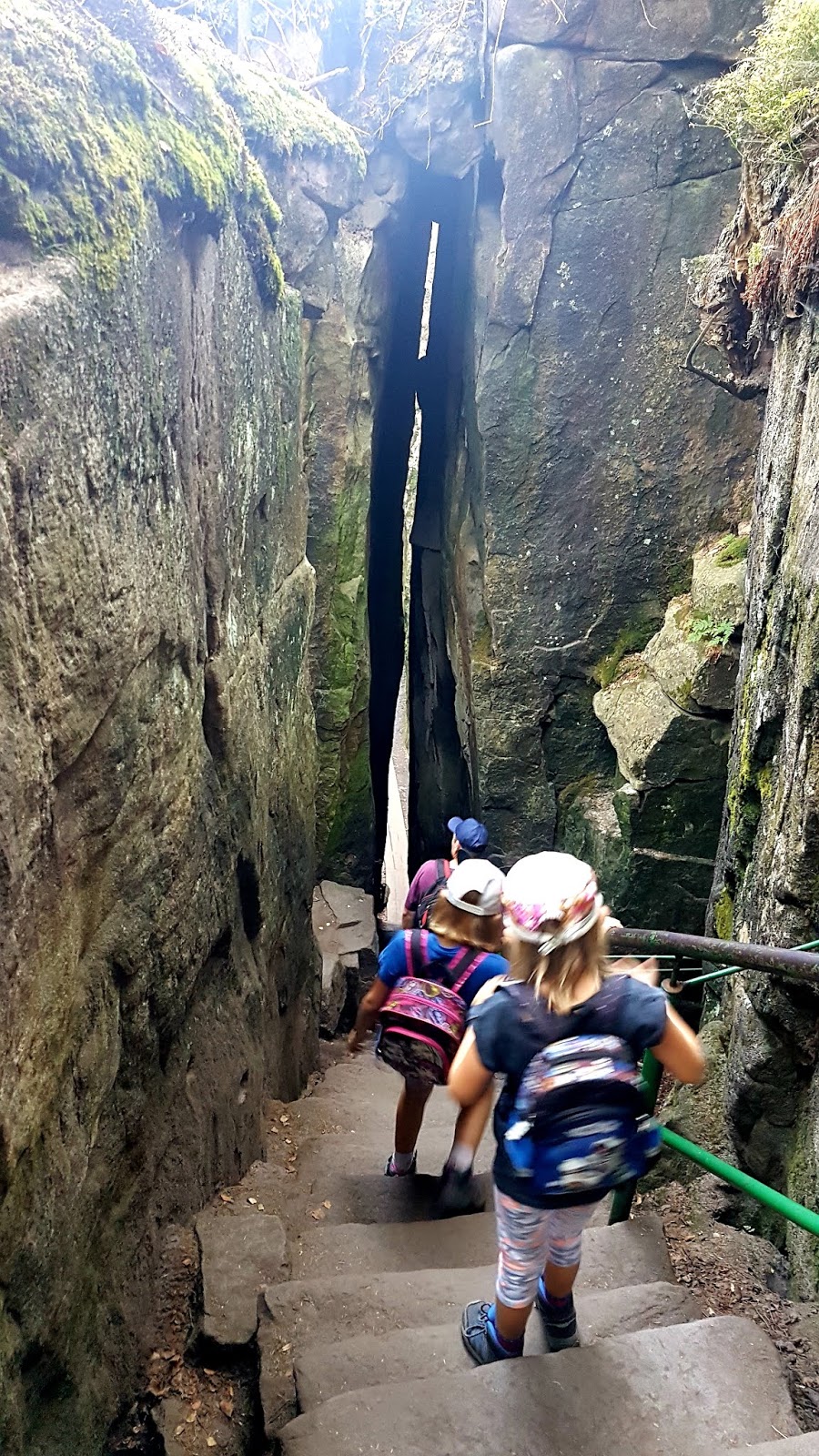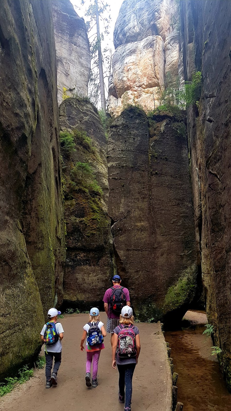 Pojechaliśmy też do Czech zobaczyć potężne Skalne Miasto. Nie było tam ciasnych przejść i zbyt wielu tajemniczych zgłębień, ale ogrom i niesamowite kształty skał sprawiały, że czuliśmy się tak, jakbyśmy zwiedzali wnętrza kopalni Moria z Władcy Pierścienie. Dzieci odruchowo nasłuchiwały, czy nie usłyszą bębnów wróżących niebezpieczeństwo;).
