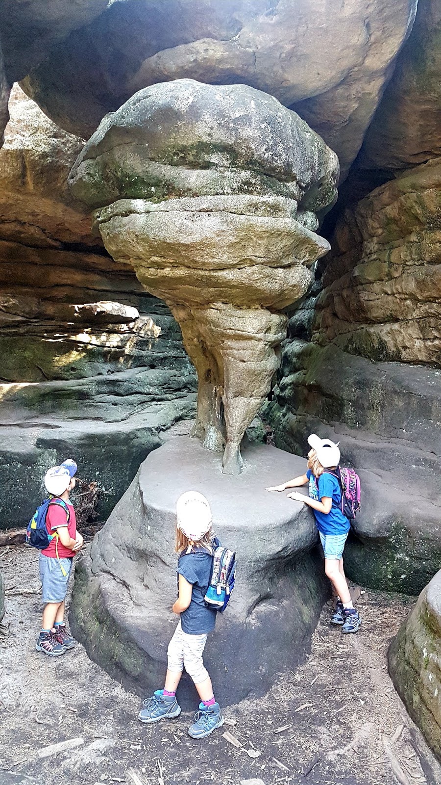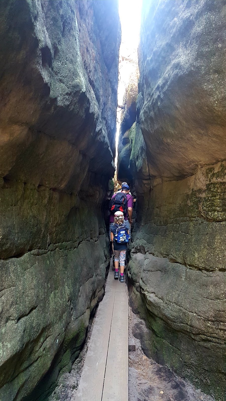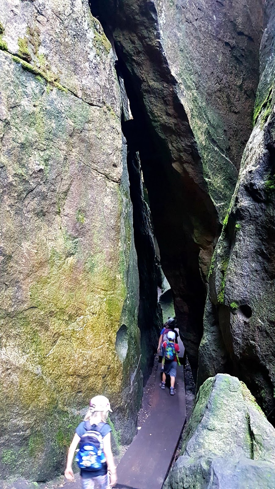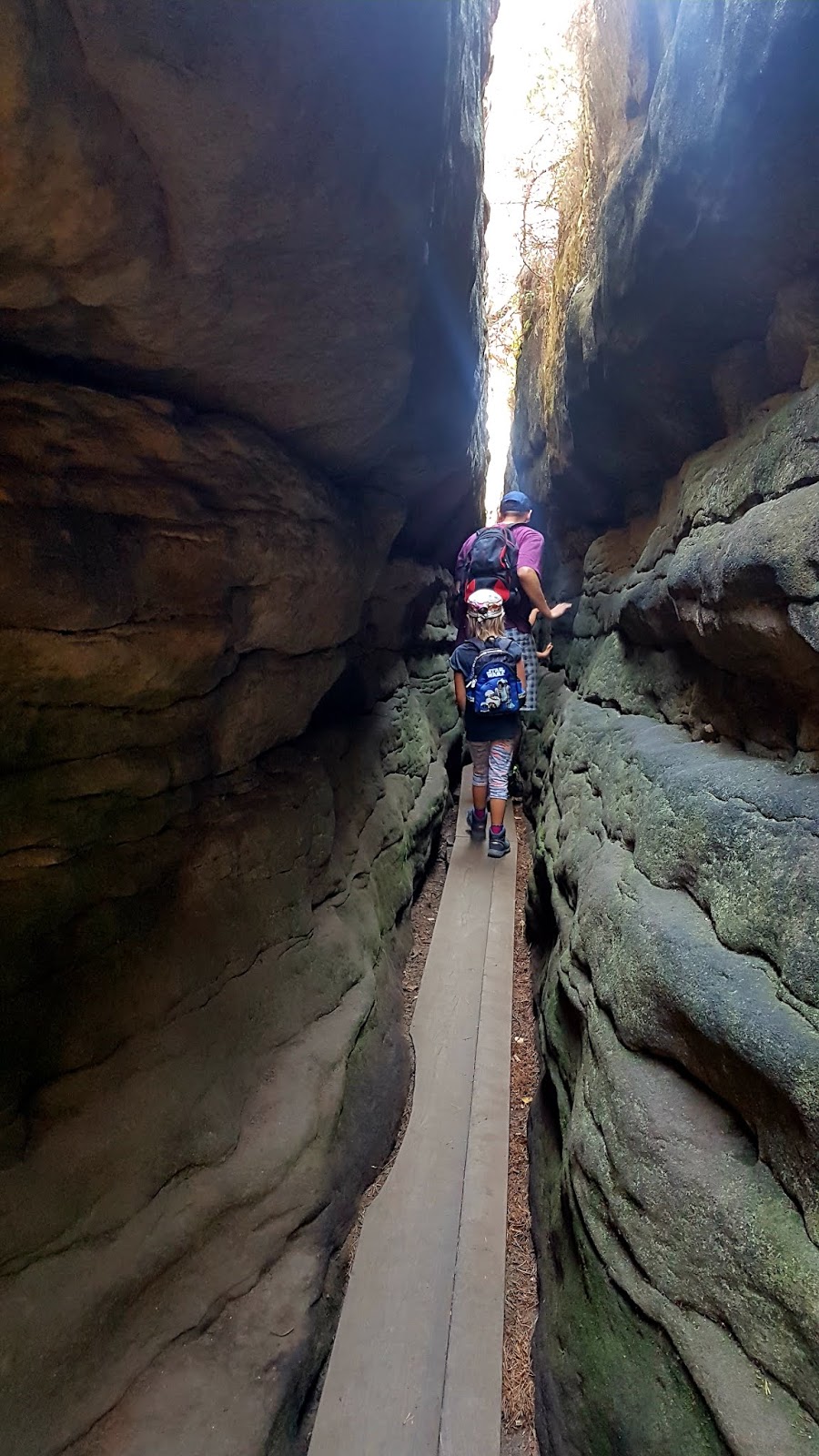 Pojechaliśmy też do Czech zobaczyć potężne Skalne Miasto. Nie było tam ciasnych przejść i zbyt wielu tajemniczych zgłębień, ale ogrom i niesamowite kształty skał sprawiały, że czuliśmy się tak, jakbyśmy zwiedzali wnętrza kopalni Moria z Władcy Pierścienie. Dzieci odruchowo nasłuchiwały, czy nie usłyszą bębnów wróżących niebezpieczeństwo;).