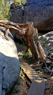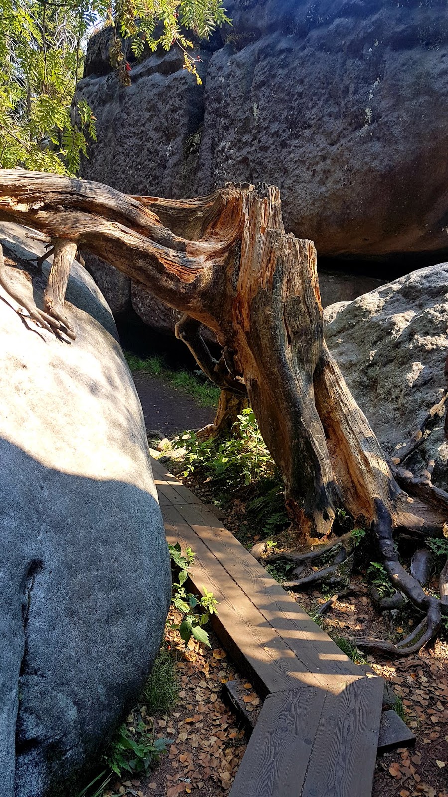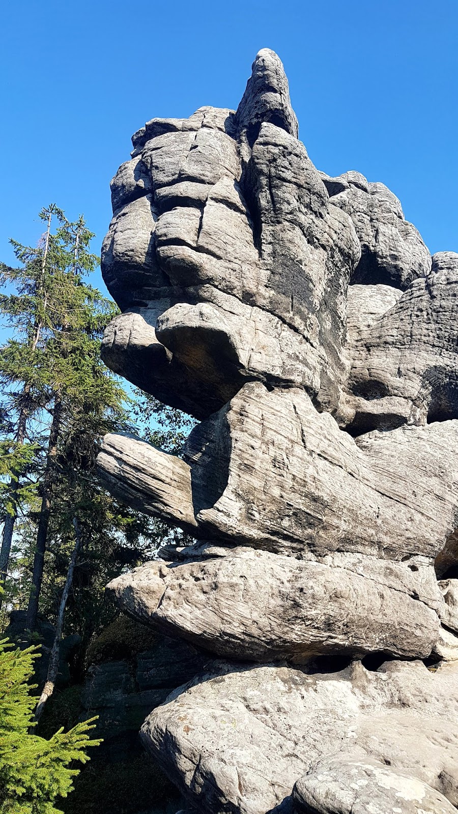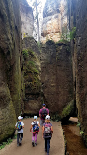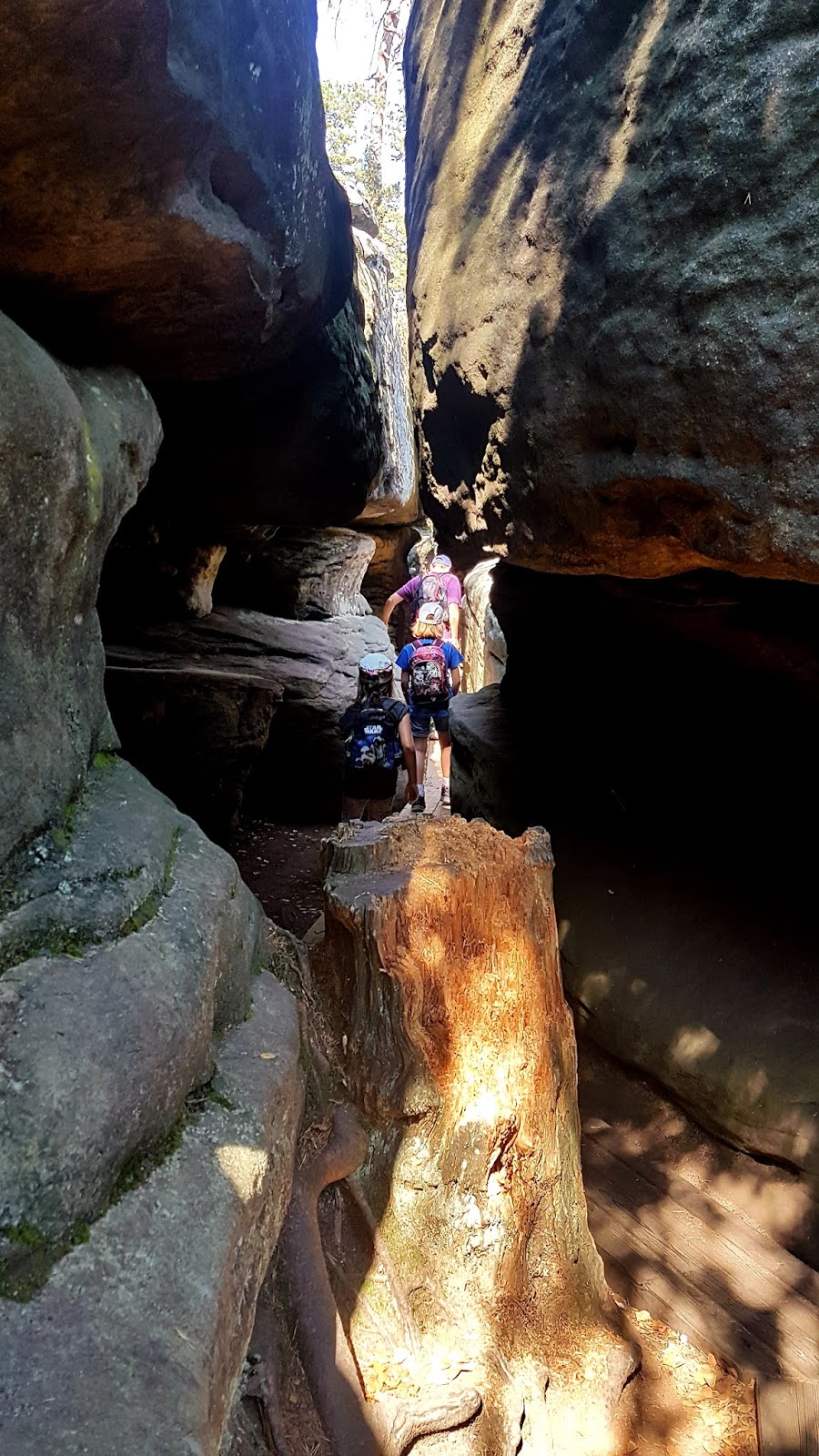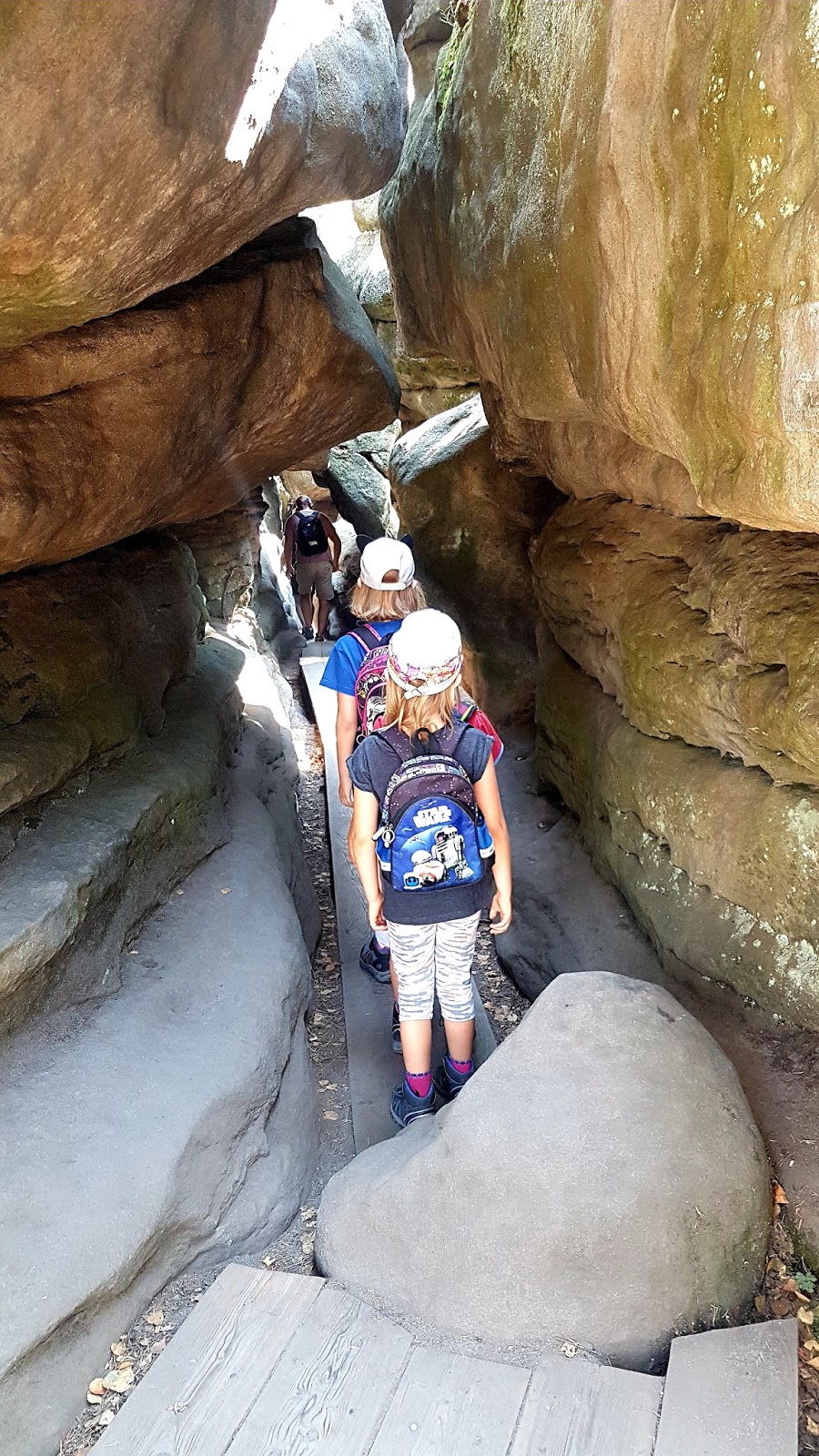 Pojechaliśmy też do Czech zobaczyć potężne Skalne Miasto. Nie było tam ciasnych przejść i zbyt wielu tajemniczych zgłębień, ale ogrom i niesamowite kształty skał sprawiały, że czuliśmy się tak, jakbyśmy zwiedzali wnętrza kopalni Moria z Władcy Pierścienie. Dzieci odruchowo nasłuchiwały, czy nie usłyszą bębnów wróżących niebezpieczeństwo;).