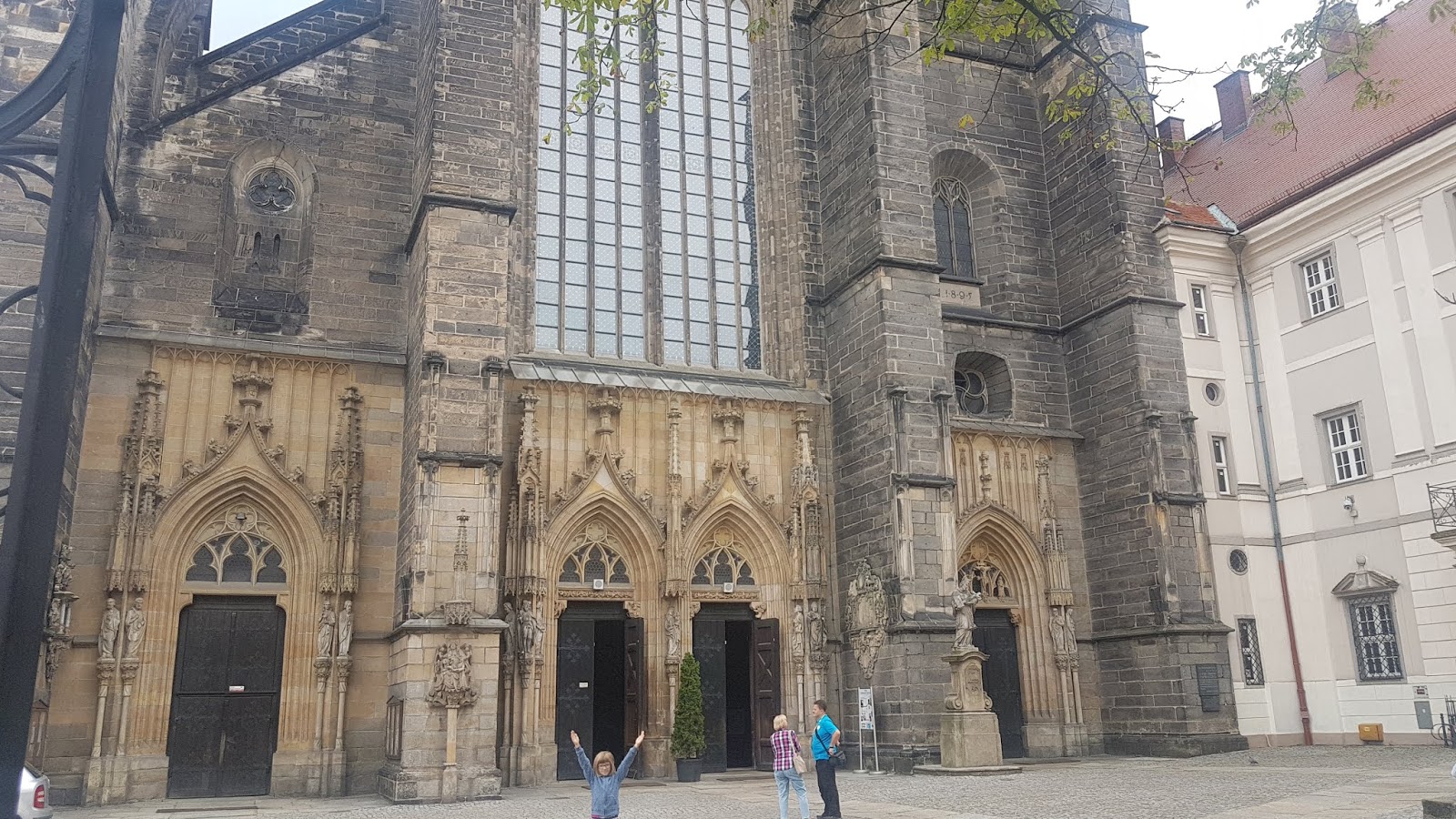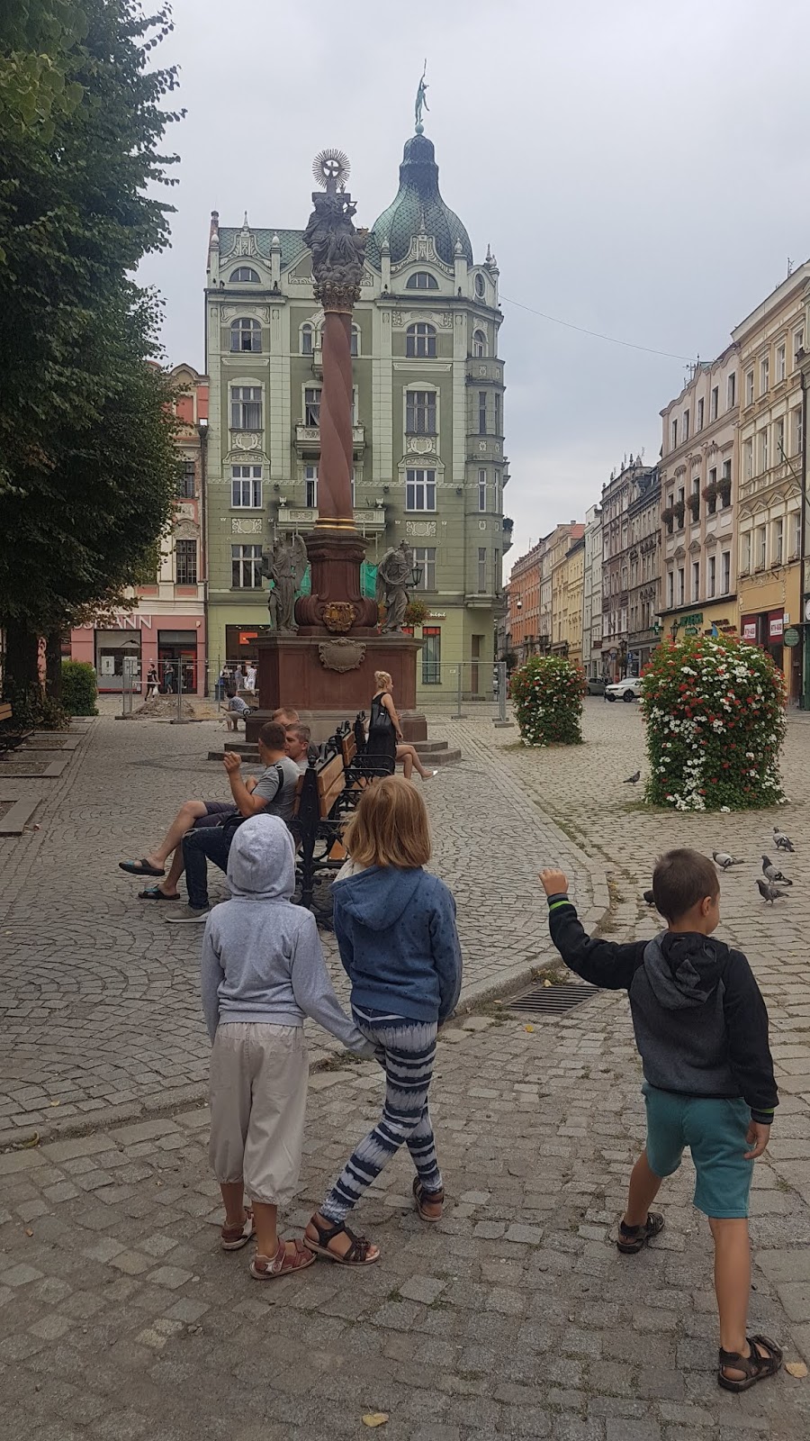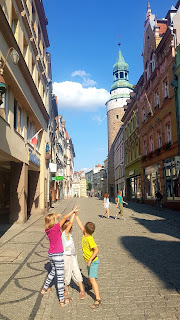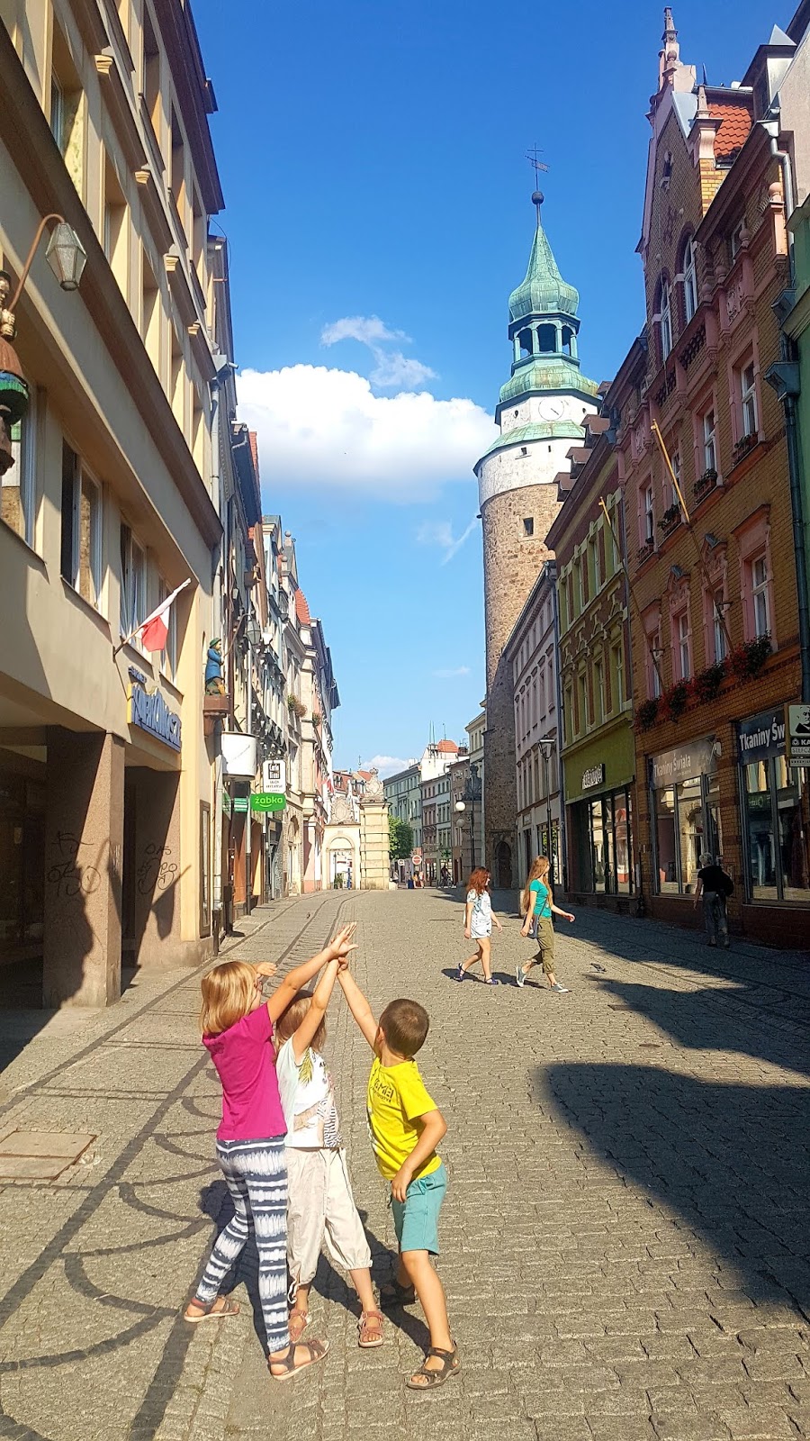 Następnego dnia ruszyliśmy w dalsza podróż. Zapomnieliśmy misia grającego kołysanki, ale pan portier była tak miły, że do nas zadzwonił i zabezpieczył misia na cały tydzień, tak byśmy mogli odebrać go jadąc do babci. Naszym celem był Świeradów Zdrój, ale nie omieszkaliśmy zwiedzić kilku fajnych miejsc po drodze! Najpierw odwiedziliśmy Świdnicę. Obejrzeliśmy piękną katedrę i starówkę – i z poziomu ziemi i z wysokości wieży ratusza. Dowiedzieliśmy się, że Świdniczanie mają poczucie humoru;). Później zwidzieliśmy Kościół Pokoju – zbudowany w niezwykły sposób jedynie z drewna, gliny i słomy, w ekspresowym tempie 1 roku – zgodnie z prawem ustanowionym w tamtych czasach wobec protestantów.