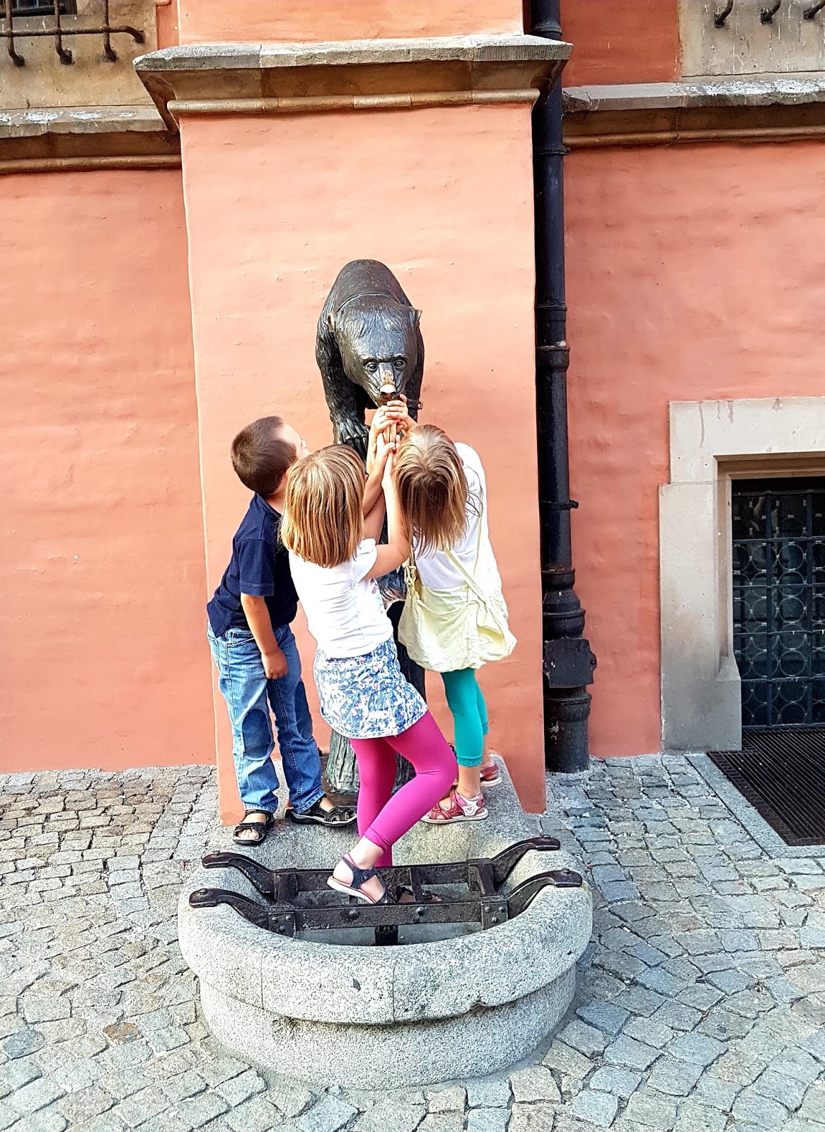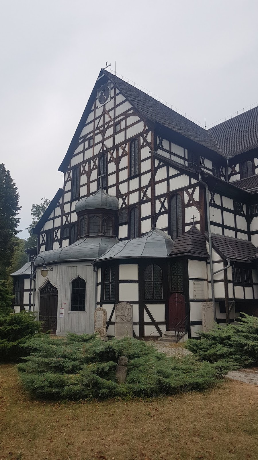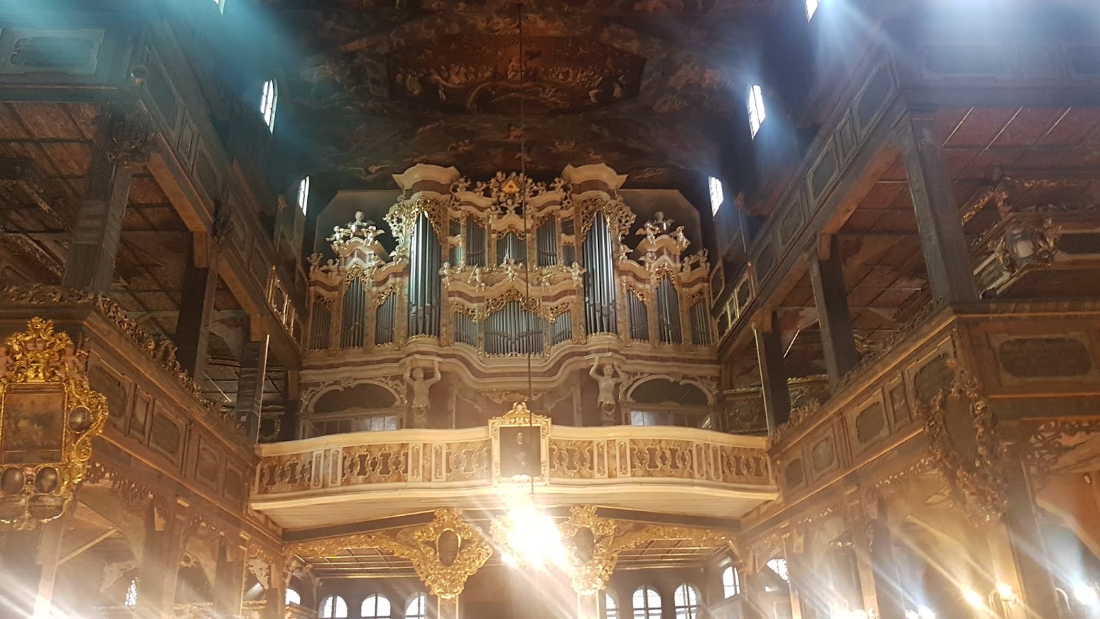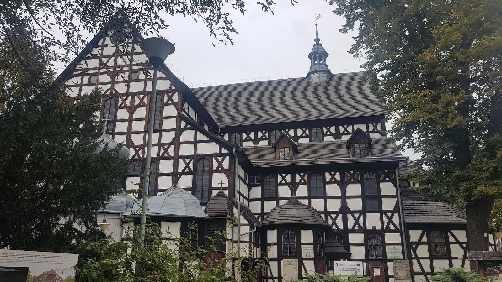Następnego dnia ruszyliśmy w dalsza podróż. Zapomnieliśmy misia grającego kołysanki, ale pan portier była tak miły, że do nas zadzwonił i zabezpieczył misia na cały tydzień, tak byśmy mogli odebrać go jadąc do babci. Naszym celem był Świeradów Zdrój, ale nie omieszkaliśmy zwiedzić kilku fajnych miejsc po drodze! Najpierw odwiedziliśmy Świdnicę. Obejrzeliśmy piękną katedrę i starówkę – i z poziomu ziemi i z wysokości wieży ratusza. Dowiedzieliśmy się, że Świdniczanie mają poczucie humoru;). Później zwidzieliśmy Kościół Pokoju – zbudowany w niezwykły sposób jedynie z drewna, gliny i słomy, w ekspresowym tempie 1 roku – zgodnie z prawem ustanowionym w tamtych czasach wobec protestantów.