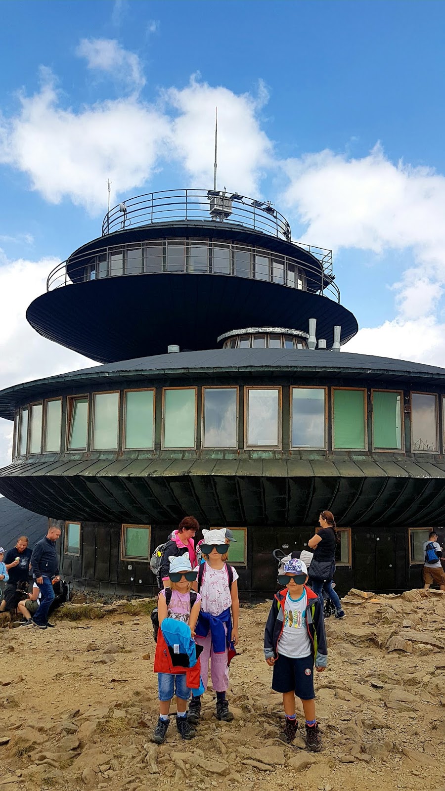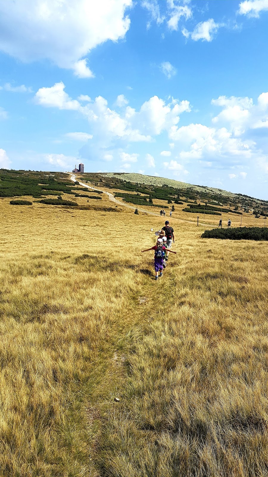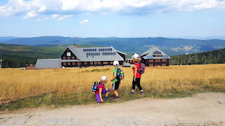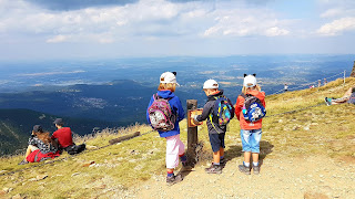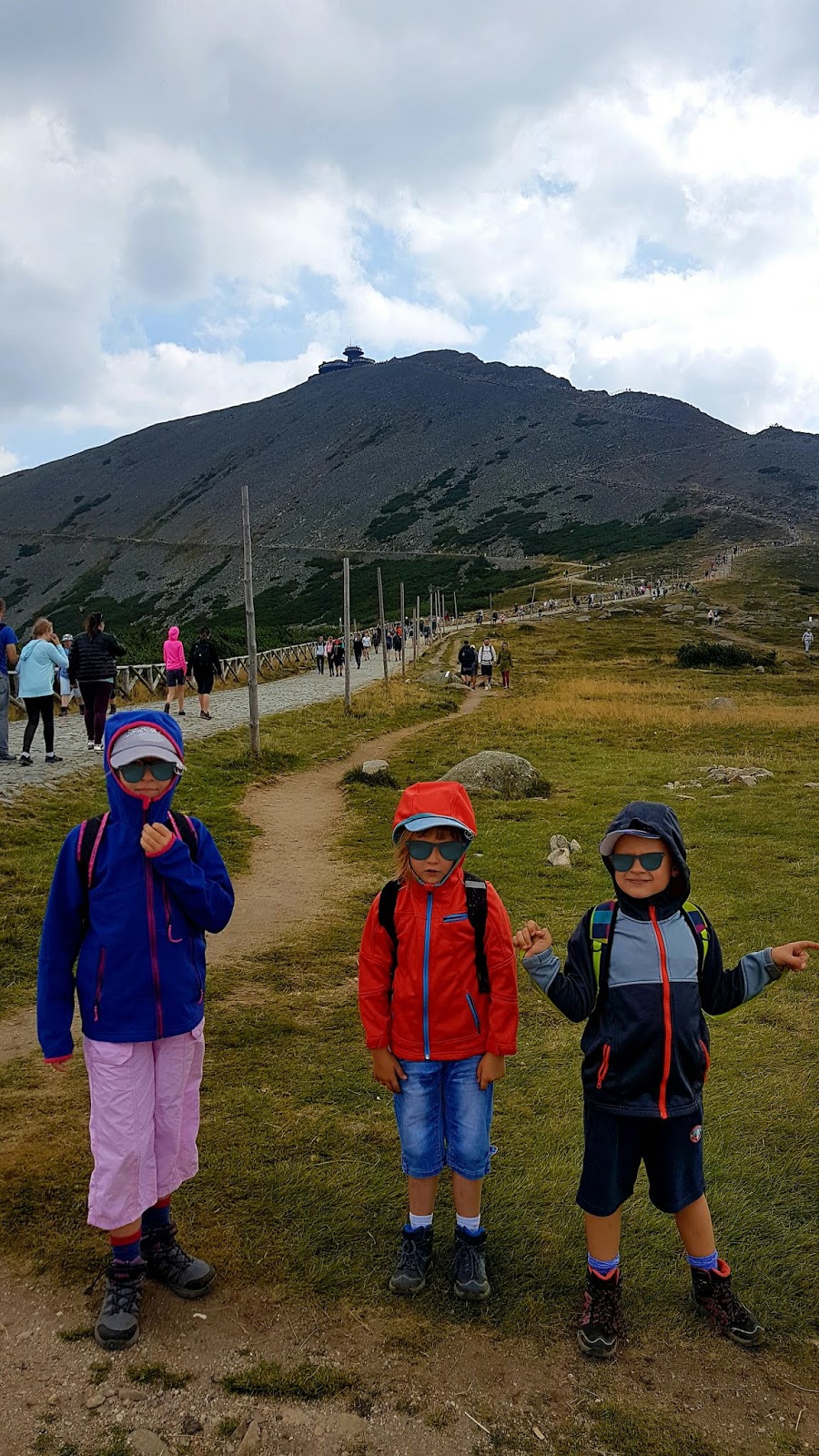 Kolejnego dnia ruszyliśmy na Śnieżkę! Z samego Karpacza! W górę szliśmy pięknym czerwonym szlakiem, w potem wróciliśmy stromym i okropnie kamienistym szlakiem czarnym (nie polecamy). Razem wyszło ponad 16km. Ali prawie biegł do góry i mieliśmy wrażenie, że stopień nachylenia gruntu nie robi mu żadnej różnicy. Z reszta siostry niewiele odstawały. Gdy wyszliśmy z lasu Ali zapragną wziąć sobie kamyczek na pamiątkę, na co pozwoliłam i zapakował go do plecaka. Wniósł go na sam szczyt i zniósł na dół. Potem okazało się, że jego „kamyczek” ważył ponad 650g.…;)