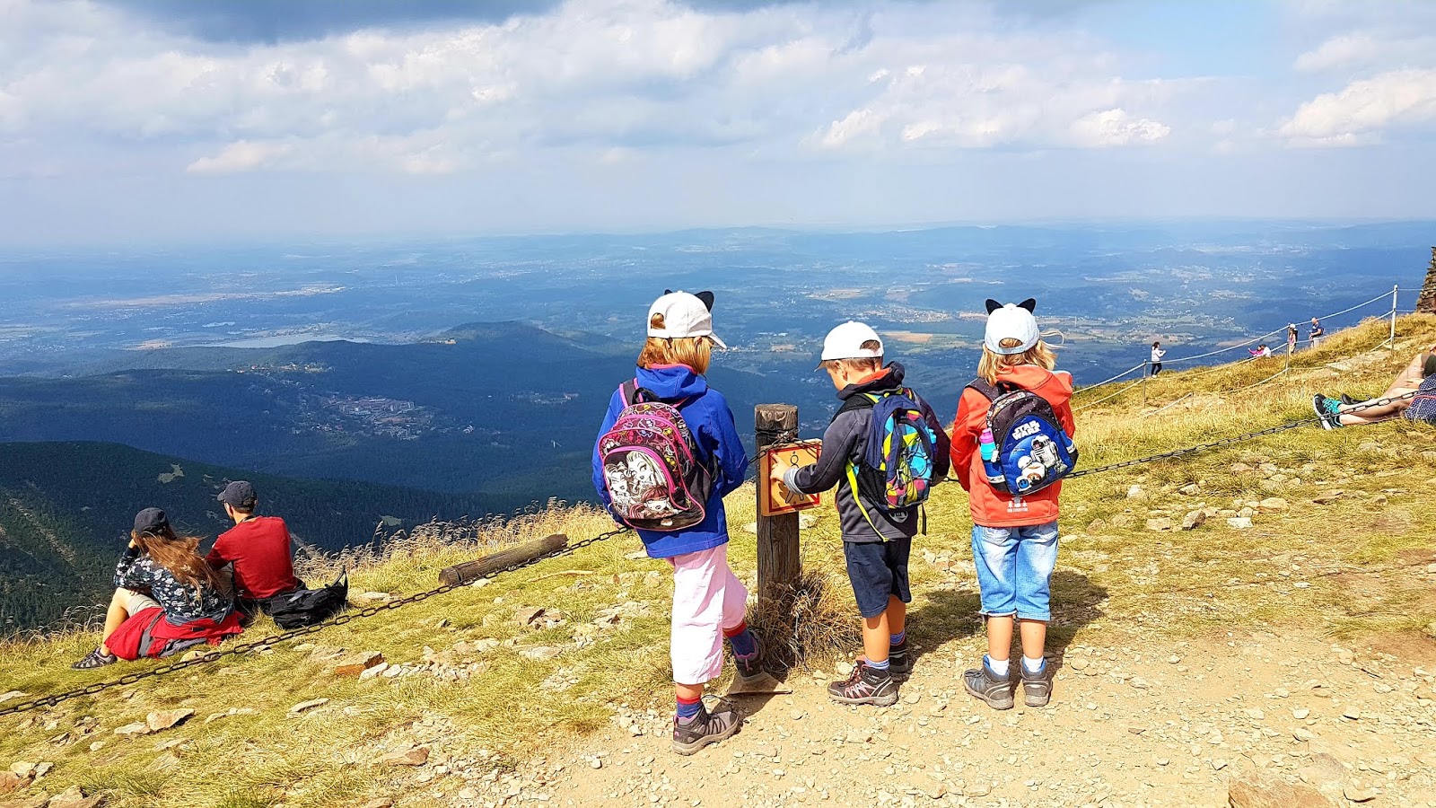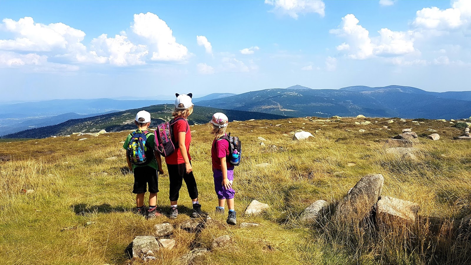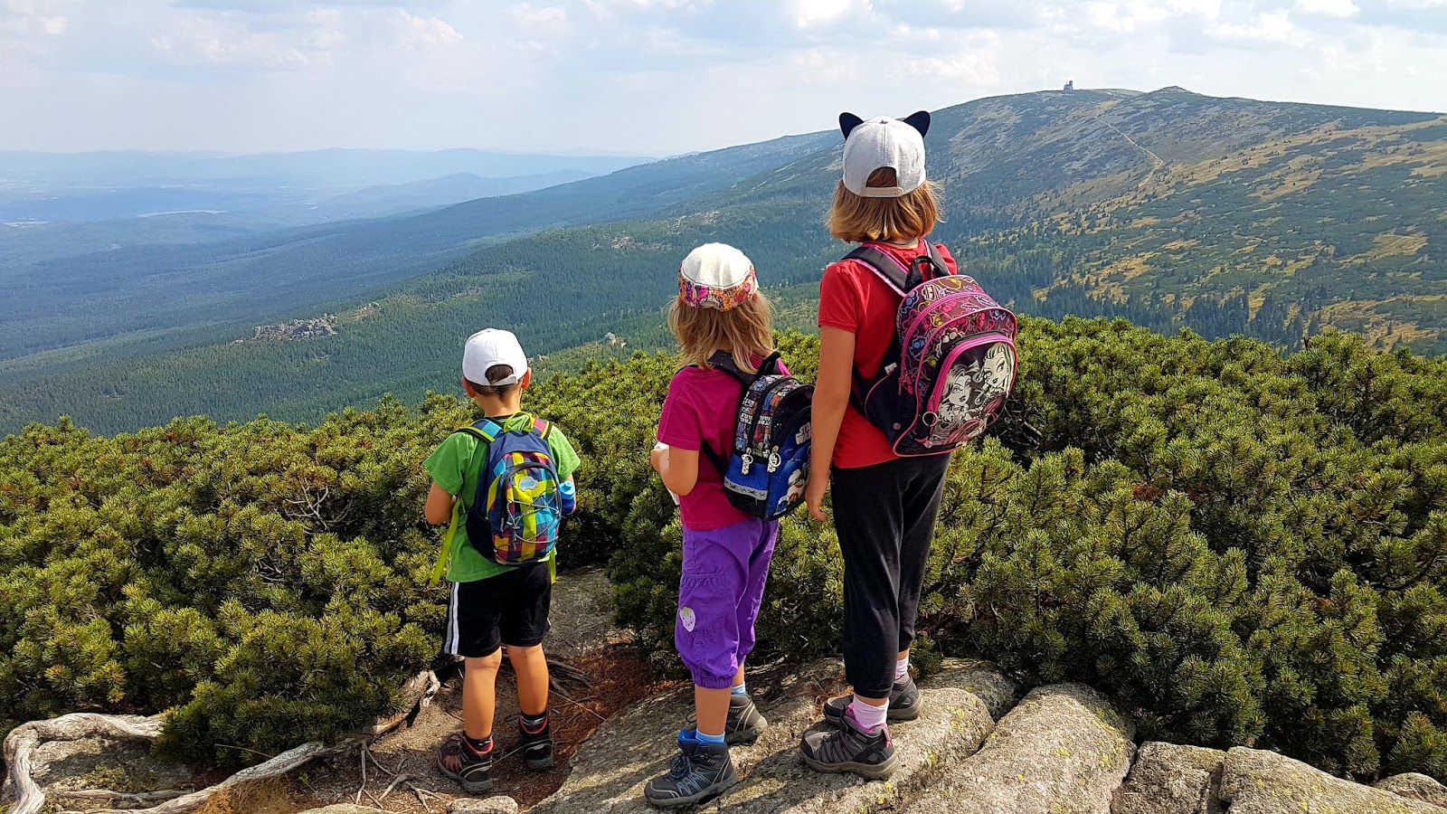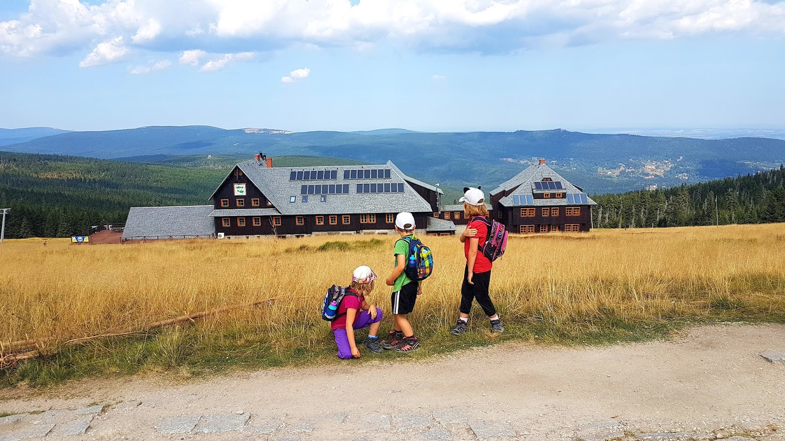 Kolejnego dnia ruszyliśmy na Śnieżkę! Z samego Karpacza! W górę szliśmy pięknym czerwonym szlakiem, w potem wróciliśmy stromym i okropnie kamienistym szlakiem czarnym (nie polecamy). Razem wyszło ponad 16km. Ali prawie biegł do góry i mieliśmy wrażenie, że stopień nachylenia gruntu nie robi mu żadnej różnicy. Z reszta siostry niewiele odstawały. Gdy wyszliśmy z lasu Ali zapragną wziąć sobie kamyczek na pamiątkę, na co pozwoliłam i zapakował go do plecaka. Wniósł go na sam szczyt i zniósł na dół. Potem okazało się, że jego „kamyczek” ważył ponad 650g.…;)