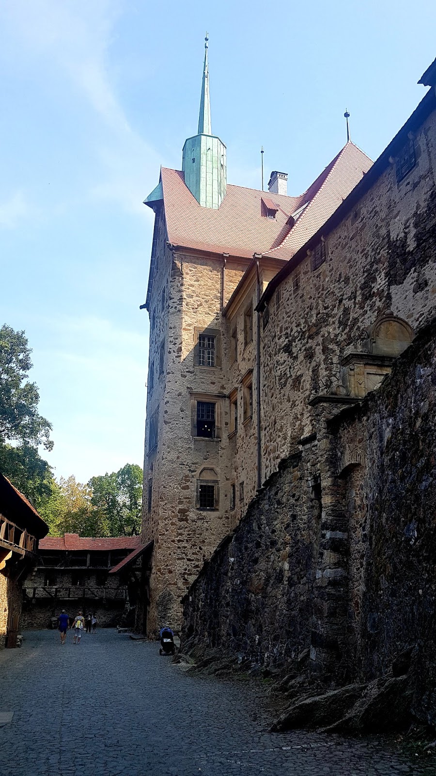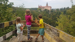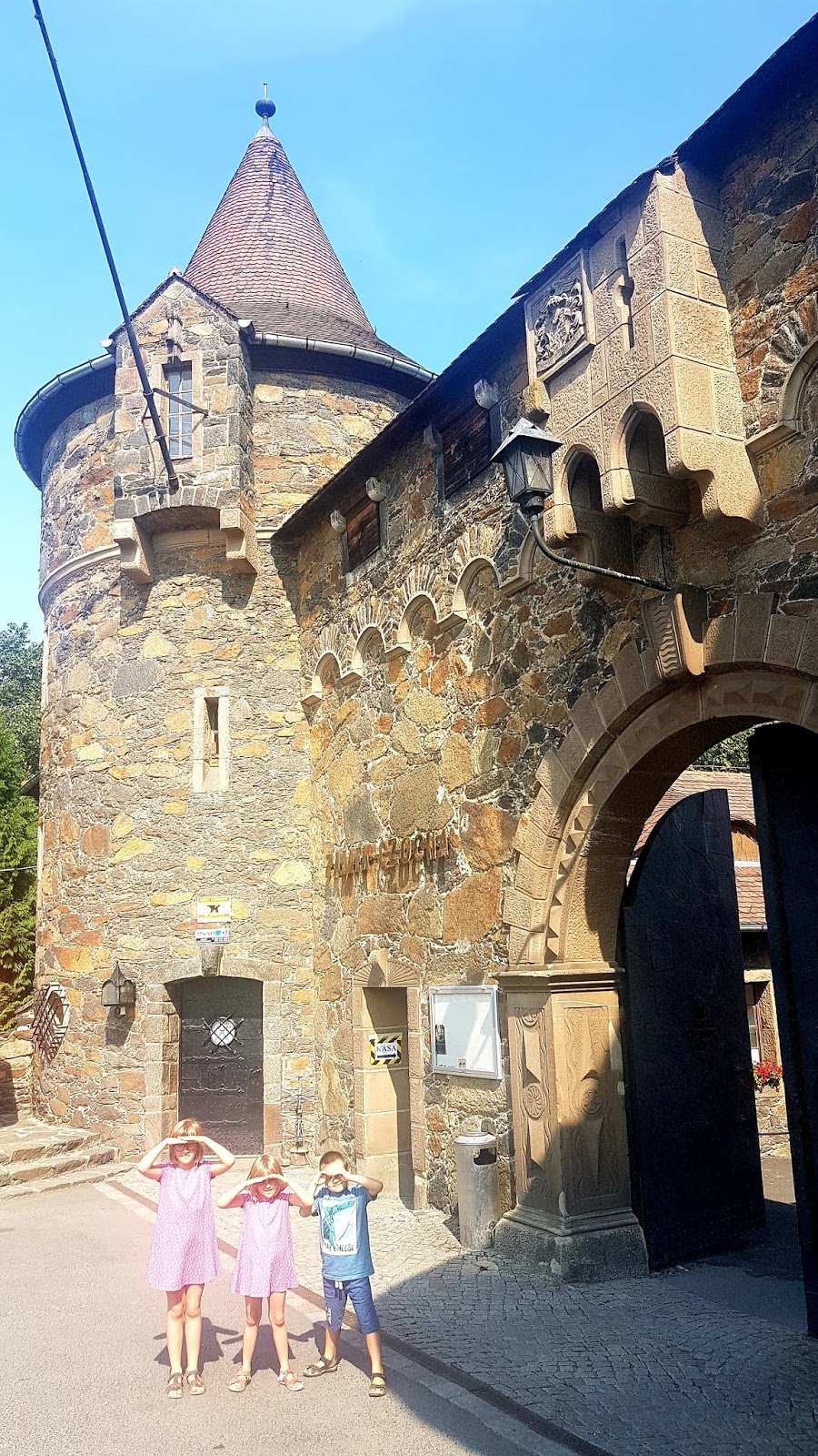 Następnego dnia była niedziele, więc udaliśmy się do małego lokalnego kościółka, gdzie obecność i aktywność dzieci w trakcie nabożeństwa wzbudziła niezwykła radość księdza proboszcza przyzwyczajonego raczej do grona parafian w starszym wieku. Potem pojechaliśmy zwiedzić oddalony o kilkanaście kilometrów zamek Czocha. Obiekt o niezwykłej historii i bardzo ładnie odrestaurowany. Mieści się w nim hotel, gdzie można przenocować nawet w bardzo królewskich warunkach. Prowadzone są tam też kolonie w stylu szkoły magii z Hogwartu:). Na dzieciach wrażenie zrobiły liczne tajemne przejścia oraz sale tortur i lochy czarownic, z których to nawet uciekły, przed domniemaną białą damą. A legendę o nieszczęsnej Gertrudzie utopionej za zdradę w studni przez męża oraz jej zamurowanym w ścianie dziecku Aleks zapamiętał szczegółowo i długo jeszcze powtarzał.