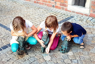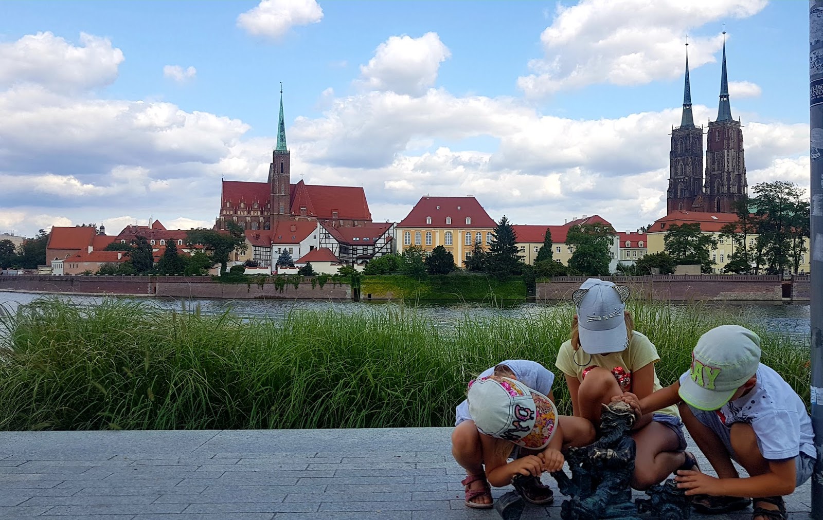 Później znów szukaliśmy krasnali:) Zwiedzaliśmy bulwary nad Odrą i wyspy, w tym Ostrów Tumski wraz z katedrą i pięknymi widokami z jej wieży. Wrażenie robiły zarówno dawne budowle jak budynki uniwersytetu, jak i nowoczesne konstrukcje. Zawiedliśmy się trochę, bo muzeum antropologiczne, które chcieliśmy odwiedzić jest niestety nieczynne latem, a piękna aula uniwersytety była w trakcie konserwacji. Zwiedziliśmy też nieduże muzeum archeologiczne i odwiedziliśmy kilka pięknych kościołów.