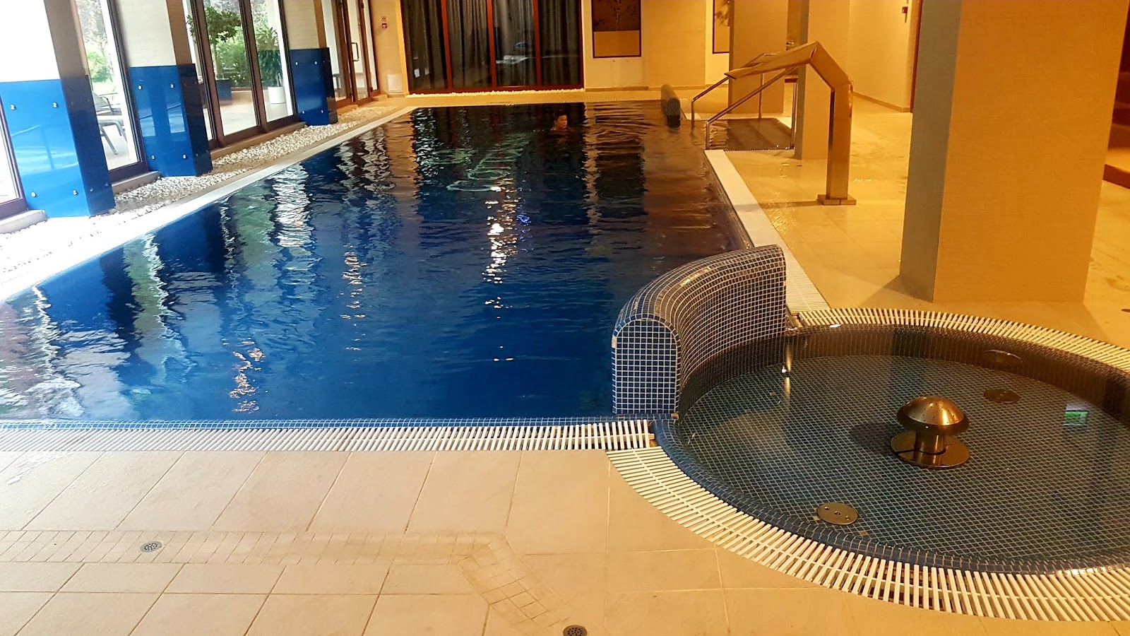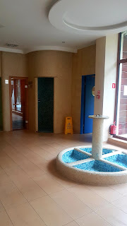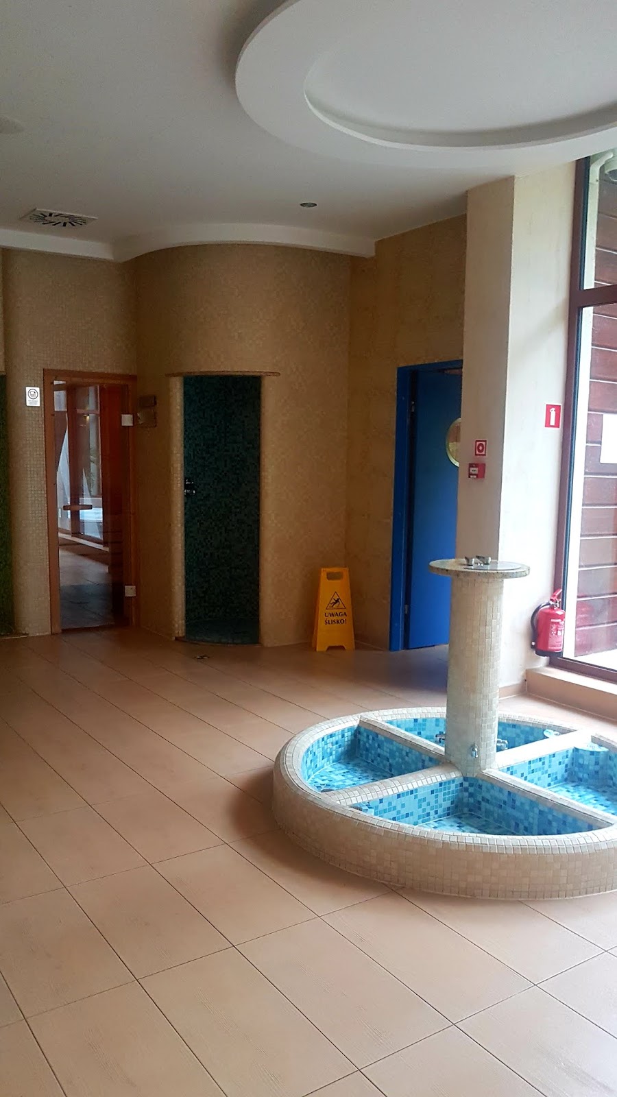 Ostatniego dnia do południa leżeliśmy w jacuzzi i zupełnie nie przeszkadzał nam padający na głowy deszcz:). Był to nawet plus, bo nikt inny nie odważył się wyjść na zewnątrz i mieliśmy 10 osobową wannę tylko dla siebie:). Potem wybraliśmy się do centrum miasteczka. Pospacerowaliśmy w parku zdrojowym. Napiliśmy się wody mineralnej w pijalni w pawilonie spacerowym i zjedliśmy pyszne gofry. Następnego dnia po śniadaniu ruszyliśmy do babci! Po drodze odbierając misia z Wrocławia i odwiedzając chrzestną mamę Asi w Tarnowskich Górach:)