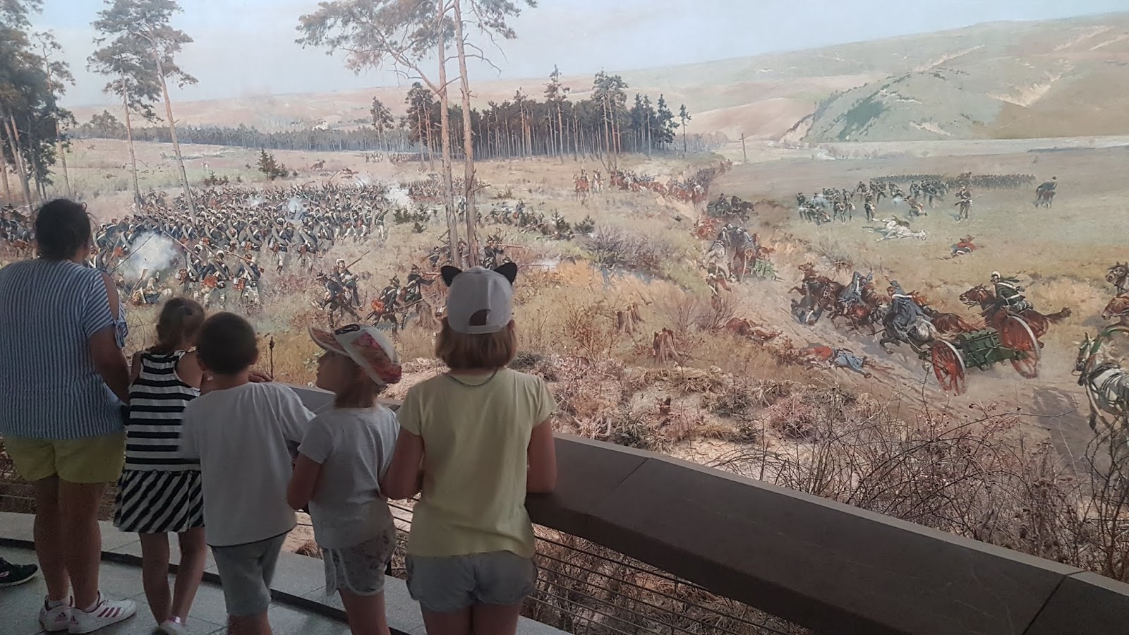 Potem udaliśmy się na dalsze zwiedzanie miasta. Obejrzeliśmy też Panoramę Racławicką. Dzieciom ogromnie podobało się to, że część otoczenia stanowiły rzeczywiste przedmioty, które nagle przechodziły w obraz. O dziwo chętnie wysłuchały też opowieści o szczegółach bitwy.