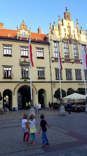 Naszą wyprawę zaczęliśmy od Wrocławia. Dotarliśmy tam w godzinach późno popołudniowych. Udaliśmy się do wynajętego apartamentu w hotelu apartamentowym Mala Italia z dala od centrum. Mieszkanie z dwoma sypialniami oraz salonem połączonym z kuchnia i jadalnią. Cicho, spokojnie, duży parking i całodobowa recepcja, a do tego przystępne ceny. Dodatkowo otrzymaliśmy bon na zniżkę 25% we włoskiej restauracji na starówce i butelkę prosecco gratis:). Zjedliśmy pyszny obiad, mąż prowadził, więc wino przypadło mi w udziale;). Na szczęście mam głowę jak znany wrocławski detektyw Eberhard Mock;). Potem udaliśmy się na wieczorne zwiedzanie starówki i poszukiwanie krasanali!