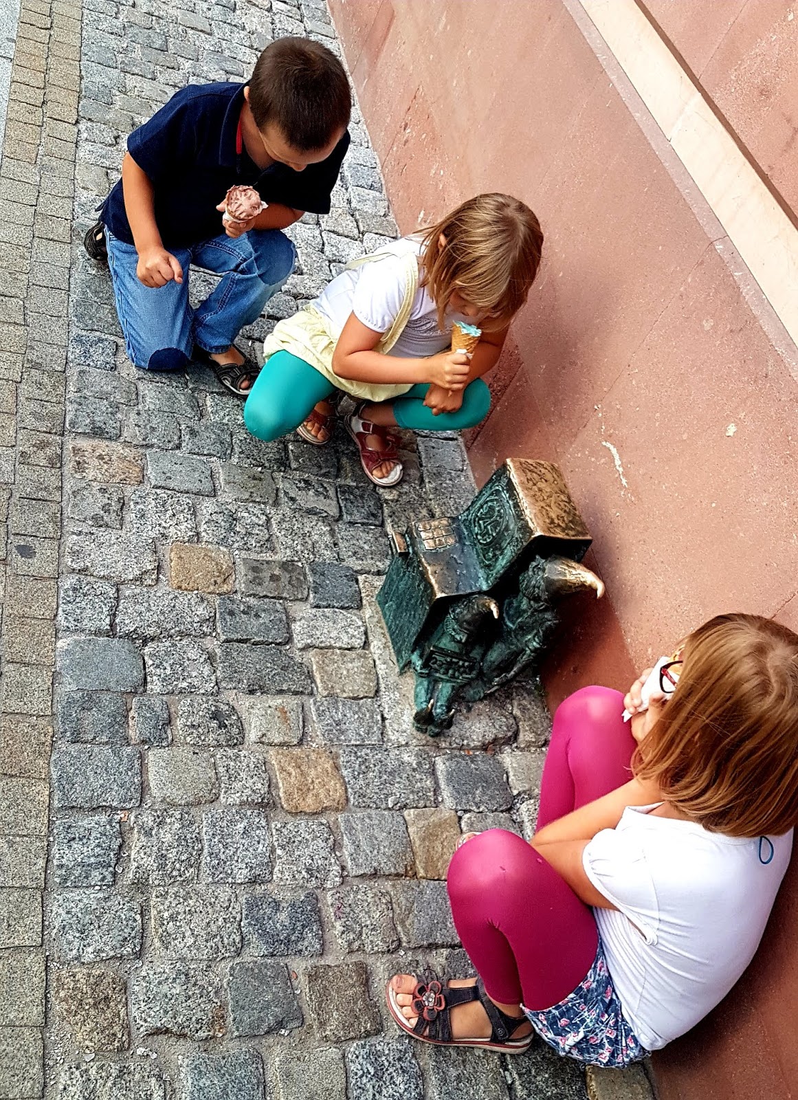 We Wrocławiu krasnale są niezaprzeczalną atrakcją, choć jeszcze bardziej ujmujący jest Pomnik Anonimowego Przechodnia (składający się z postaci odlanych z brązu, naturalnej wielkości, wchodzących i wychodzących spod ziemi). Robi niesamowite wrażenie.