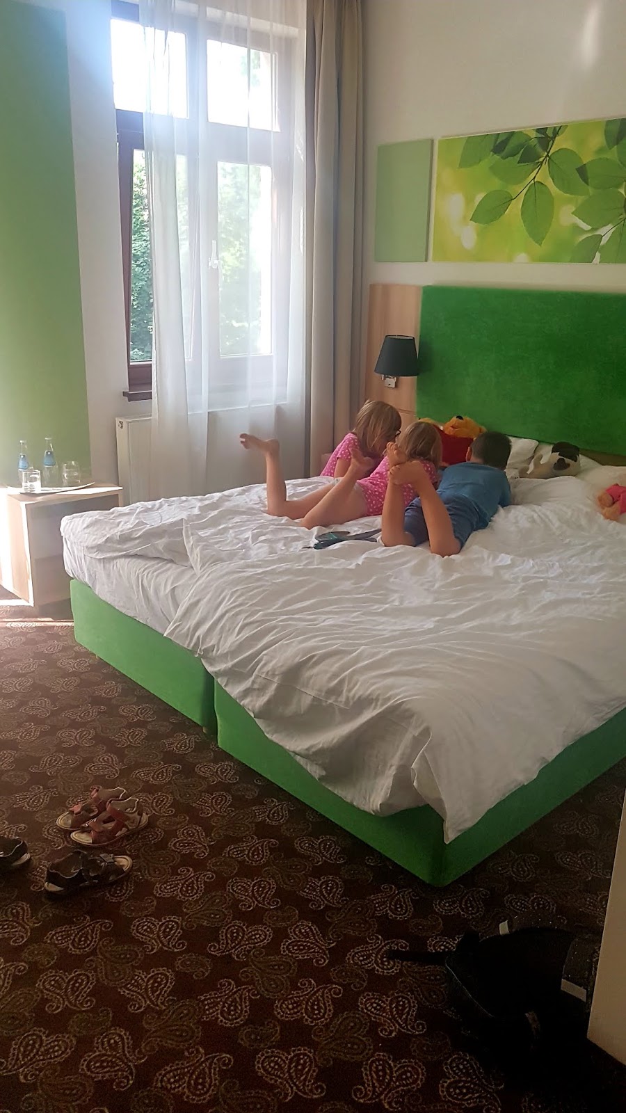 Wieczorem dotarliśmy do Świeradowa Zdroju i naszego hotelu Willa Cotonina Mineral & Spa. Obiekt położony na obrzeżach miasta na sporym ogrodzonym terenie, tuż nad szemrzącym cicho potokiem. Obiekt oferuje rodzinom wiele atrakcji. Jest duży plac zabaw, dla maluchów niewielka sala zabaw w budynku, trawiaste boiska i teren rekreacyjny. W wakacje prowadzone są codziennie animacje dla dzieci – zajęcia sportowe, plastyczne czy harcerskie. Dwa razy w tygodniu wieczorem organizowane jest ognisko. Goście mogą korzystać z basenu (choć woda jest w nim trochę zbyt zimna – dzieciom to nie robiła, ale my marzliśmy;)), saun oraz fantastycznego zewnętrznego jacuzzi z podgrzewaną wodą. W obiekcie podają bardzo smaczne śniadania. Można też wykupić obiadokolacje w formie bufetu. Dla naszej rodziny przygotowano dwa pokoje z dużymi podwójnymi łóżkami połączone drzwiami. Mieliśmy więc dwie łazienki.
