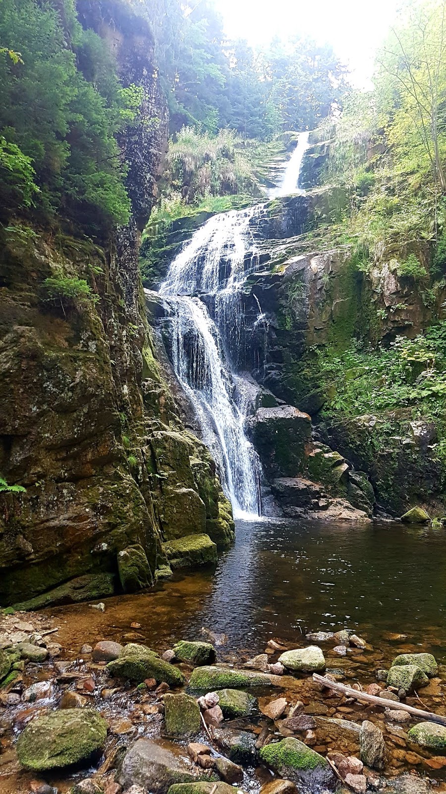 Wyprawę zaczęliśmy rano w Szklarskiej Porębie. Najpierw dotarliśmy do pięknego wąwozu Kamieńczyka i podziwialiśmy wodospad o tej samej nazwie. Oczywiście nie omieszkaliśmy pomoczyć rąk w potoku powyżej wodospadu.