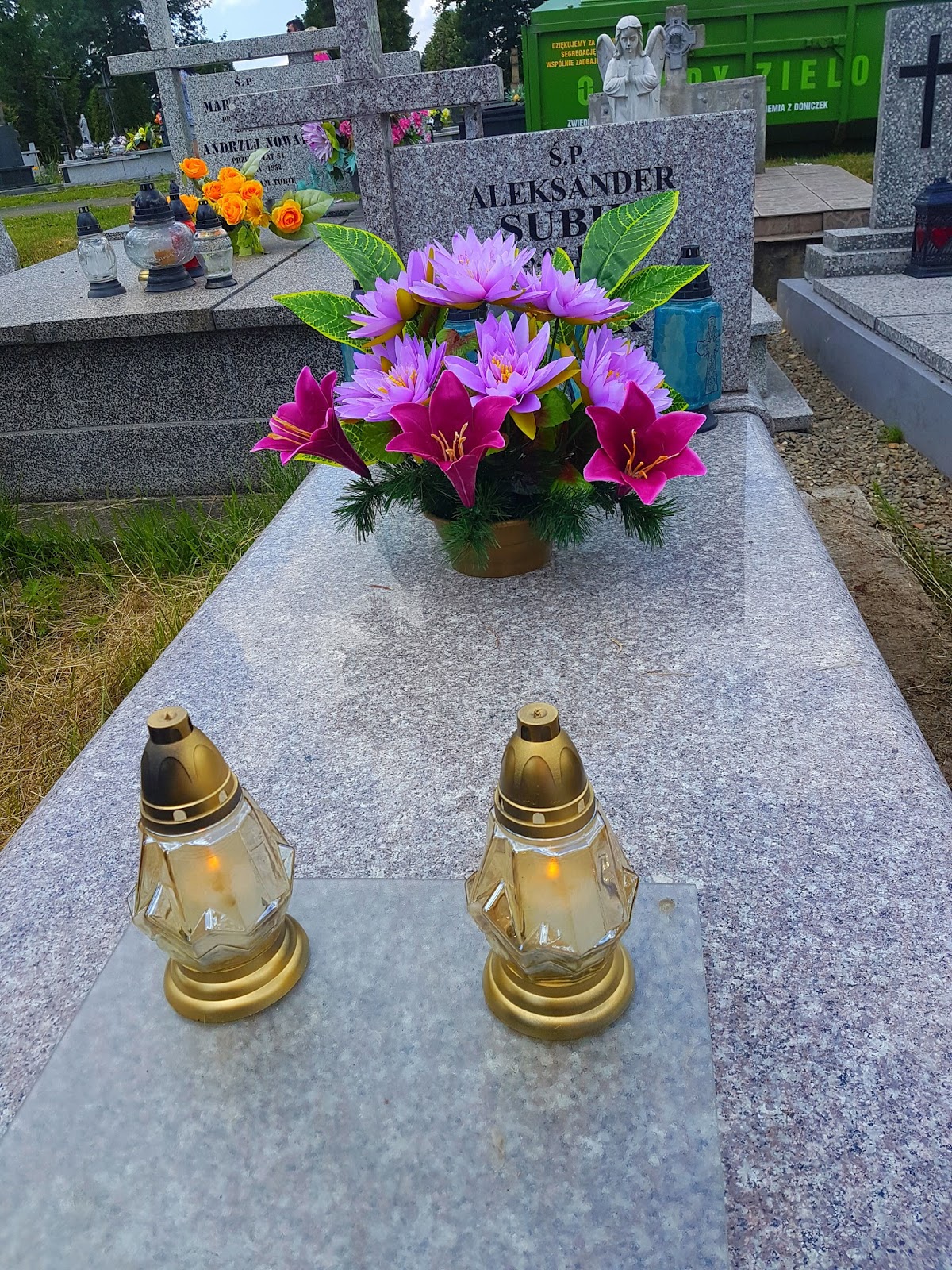Moje dzieci nie znają swojej przeszłości i nie wiadomo czy kiedyś ją poznają. Gdy skończą 18 lat i zechcą poznać swoje dawne nazwisko i ew. rodziców to im w tym pomogę, ale może to wcale nie być takie łatwe i mogą też nigdy tego nie chcieć. Nasze korzenie stają się teraz ich korzeniami. Jeśli moja mama jest ich babcią, to moi dziadkowie ich pradziadkami itd. Odwiedziliśmy dzisiaj grób ich prapradziadków. Ali bardzo się ucieszył, gdy Asia odczytała na nagrobku jego imię – prapradziadek też był Aleksander. Ustawiliśmy kwiaty, zapalili znicze, odmówiliśmy modlitwę. Oddaliśmy cześć i okazaliśmy szacunek naszym zmarłym. Nie krzyczeliśmy, nie biegaliśmy, wyrzuciliśmy śmieci do odpowiednich pojemników. Ali w rozpędzie oczyścił ze skoszonej trawy nie tylko nasz nagrobek, ale i dwa inne;).