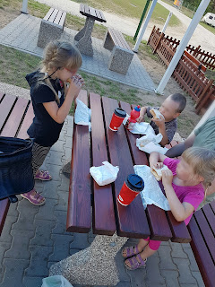 Po jedzeniu oczywiście, każdy posprzątał po sobie:)… Było super, bo obok był plac zabaw. Oczywiście skorzystaliśmy:)