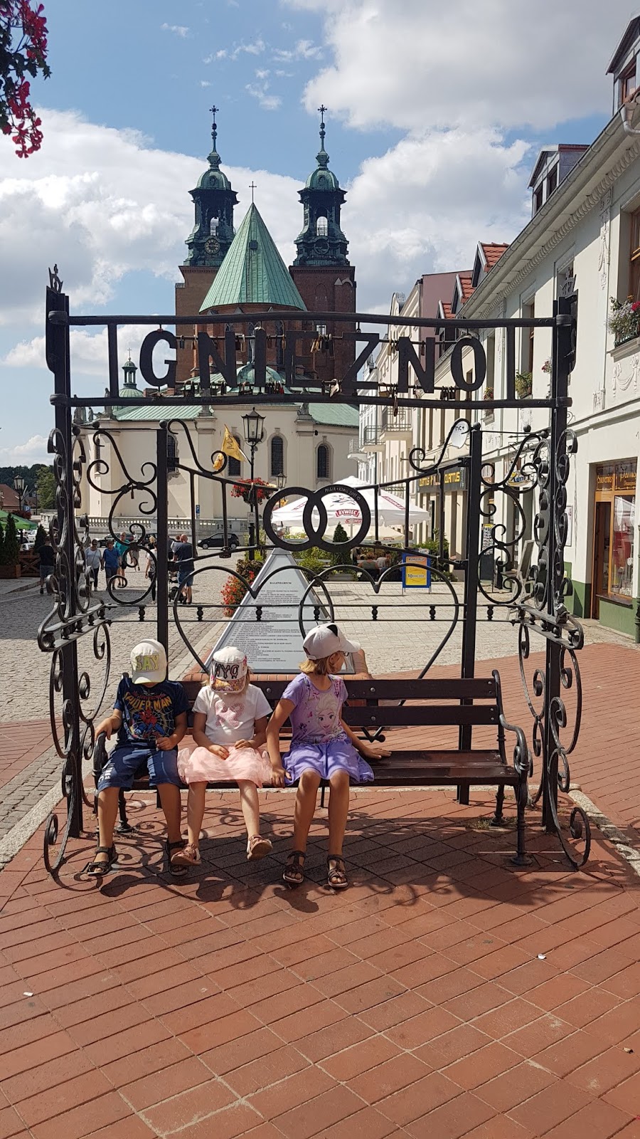 Potem ruszyliśmy do Gniezna. Na miejscu zjedliśmy pyszną pizzę w pizzerii „Wenecja” położonej na brzegu jeziora Jelonek, posiada ona bardzo fajny duży ogródek otoczony żywopłotem z piaskownicą pełna zabawek. Później Zwiedziliśmy bazylikę prymasowską i główne ulice miasta.
