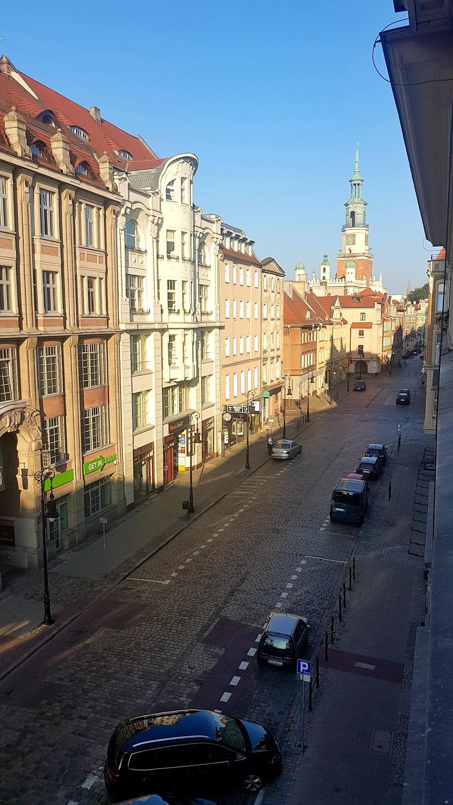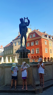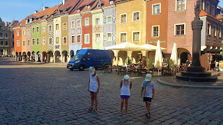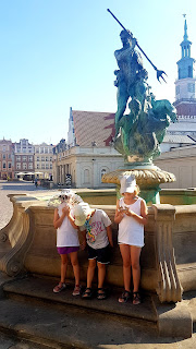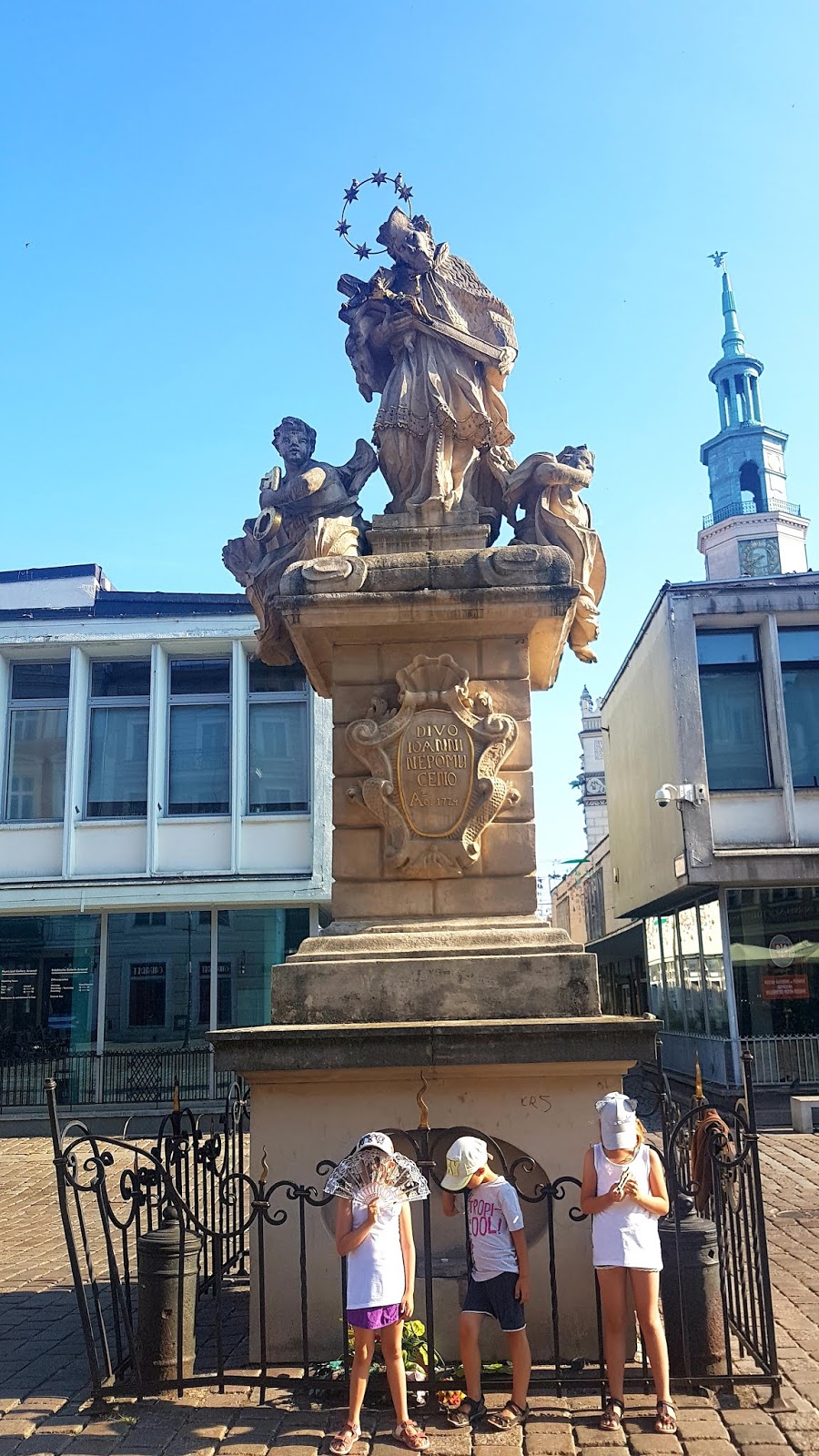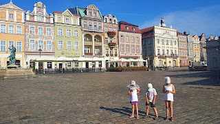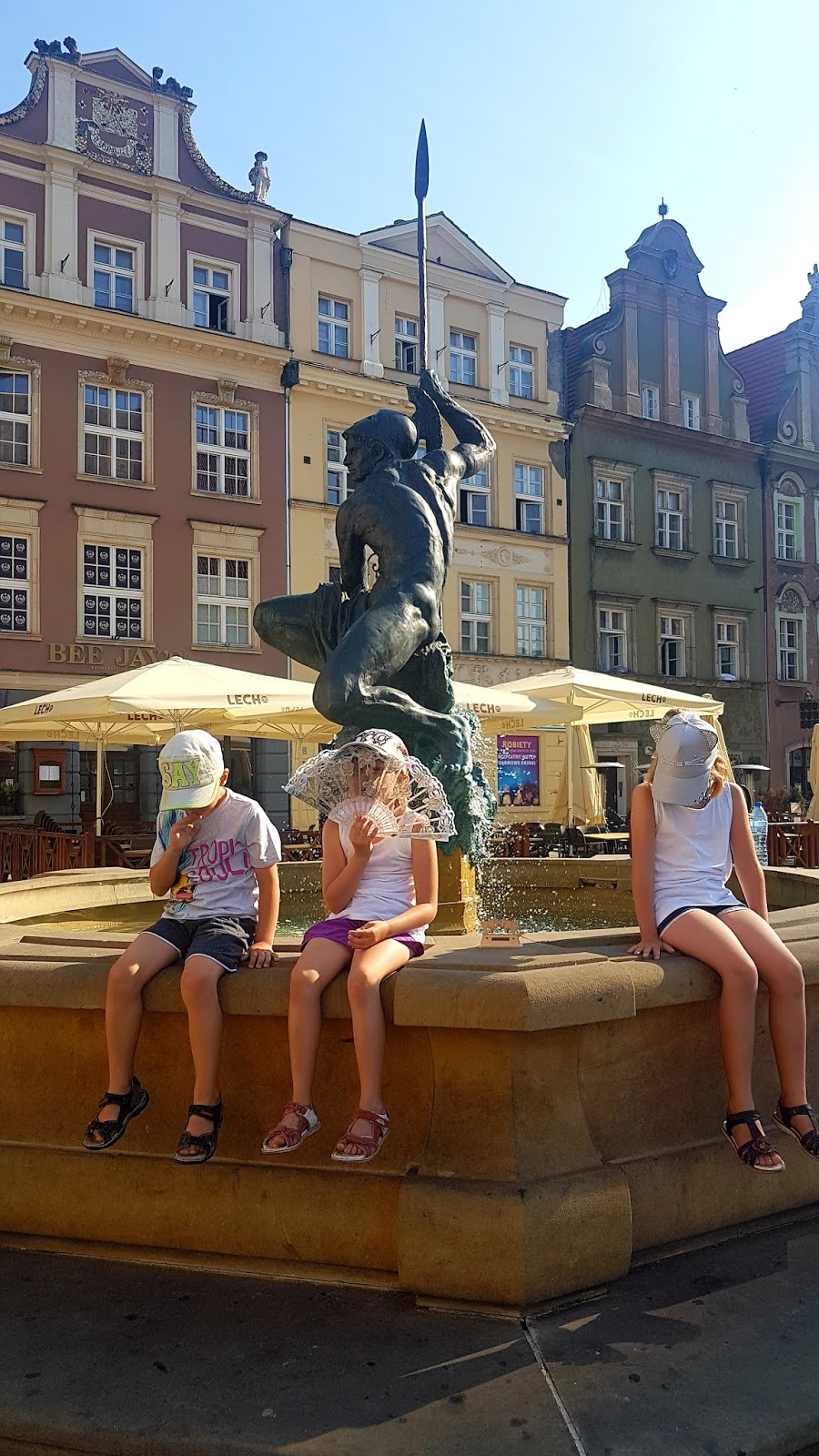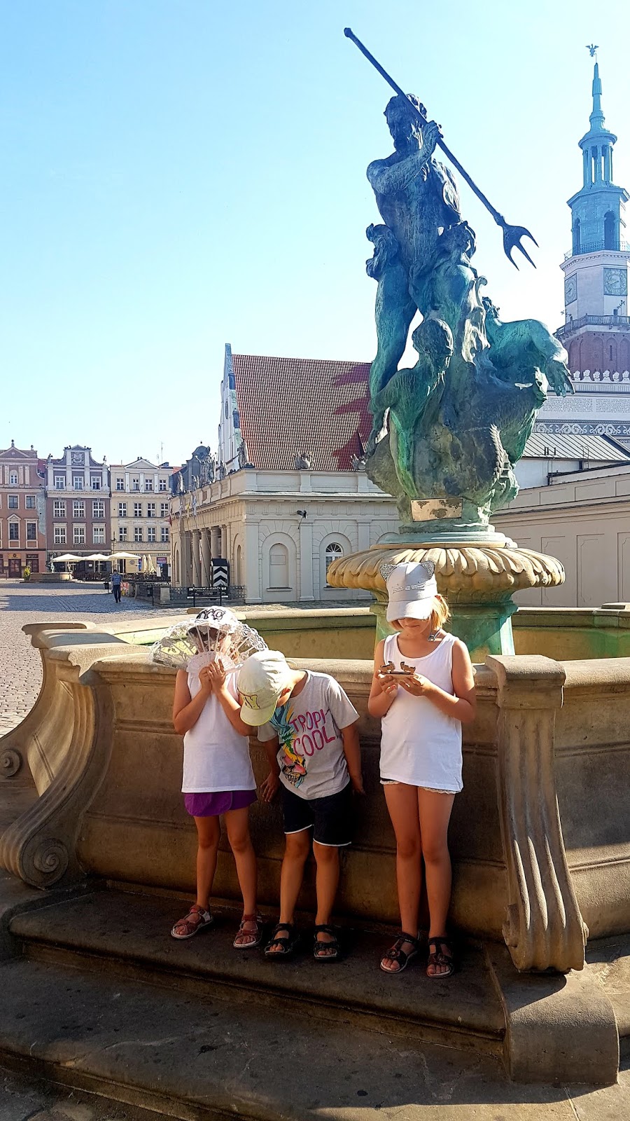 Dojechaliśmy do Poznania późnym wieczorem, więc zwiedzanie zaczęliśmy rano. Dzieci wstały przed 7, więc o 8 byliśmy już w mieście. Zobaczcie jakie pustki! mieliśmy cały rynek dla siebie! Mogliśmy swobodnie przyjżeć się każdej kamienicy, pomnikowi i fontannie.