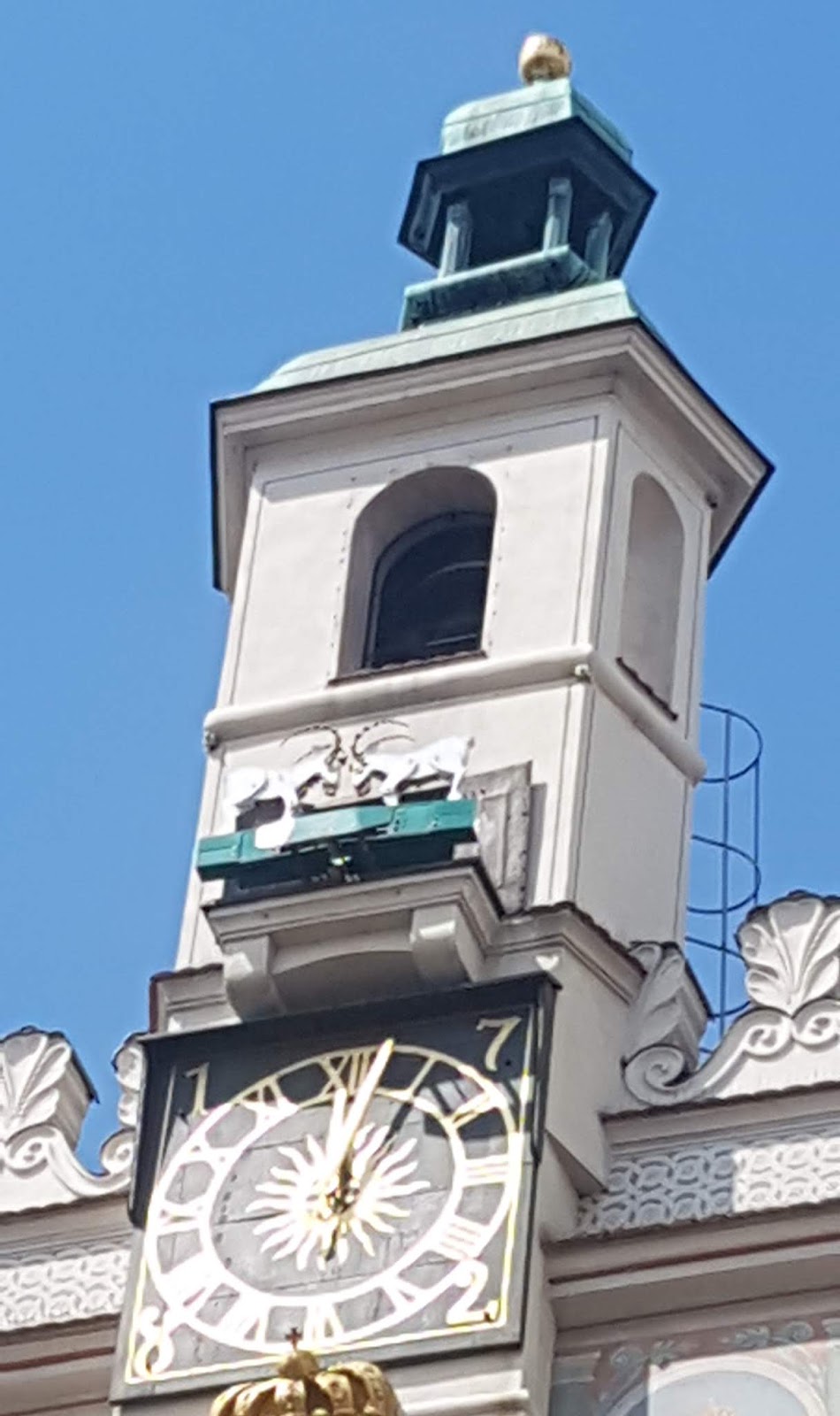 Później odwiedziliśmy Poznańskie koziołki – w formie pomniku, a o 12 oglądalismy koziołkowy pokaz na wieży ratuszowej.