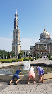 W niedzielę rano wyruszyliśmy w dalszą podróż. Najpierw do sanktuarium w Licheniu, gdzie po mszy wdrapaliśmy się pieszo na 27 piętro wieży widokowej – śmiem twierdzić, że dzieci specjalnie się nie zmaćzyły, podczas gdy ja ociekałam potem;) Widok jest tam piękny i maluchy były zachwycone! W dół ścigaliśmy się co było dodatkowa atrakcją;).