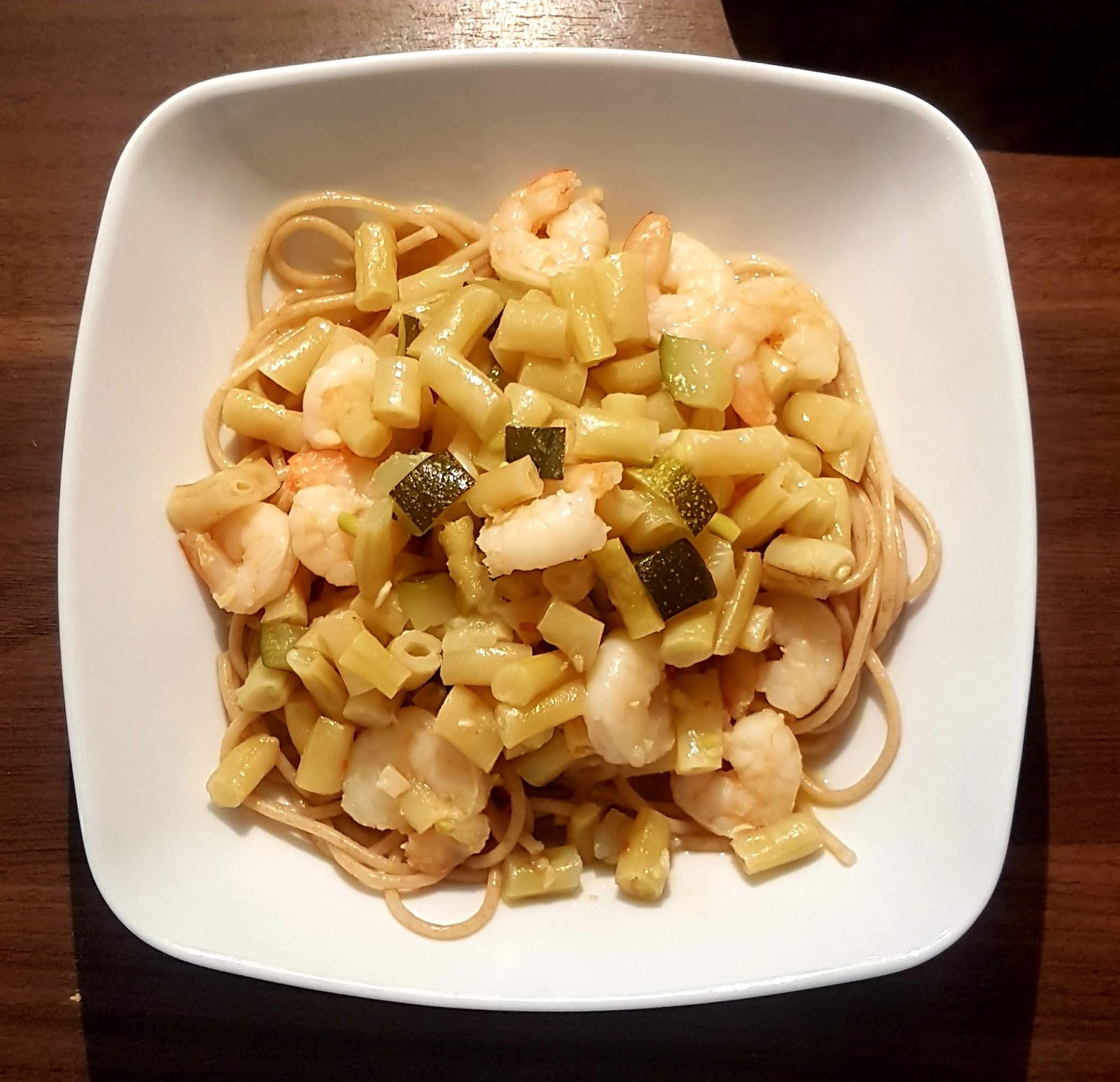 Ulubione spaghetti z krewetkami, chilli i czosnkiem oraz warzywami