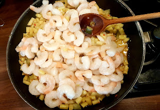 Dodajemy krewetki i zostawiamy na dużym ogniu, bez pokrywki, na ok. 10 min., by woda odparowała i sos sie zagęścił.Na sam koniec minimalnie solimy.